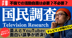 テレビにまつわる国民大調査!不倫で活動自粛は必要?犯人役のシートベルトの自主規制は不要? ニッチなアンケート結果まとめました!