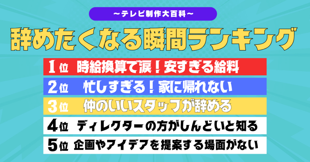 テレビ業界に入れば、必ず一度は辞めたいと思います!