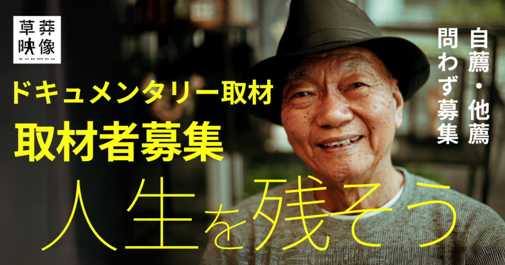 草莽映像では、ドキュメンタリーの題材になる方を自薦他薦問わず募集しております。