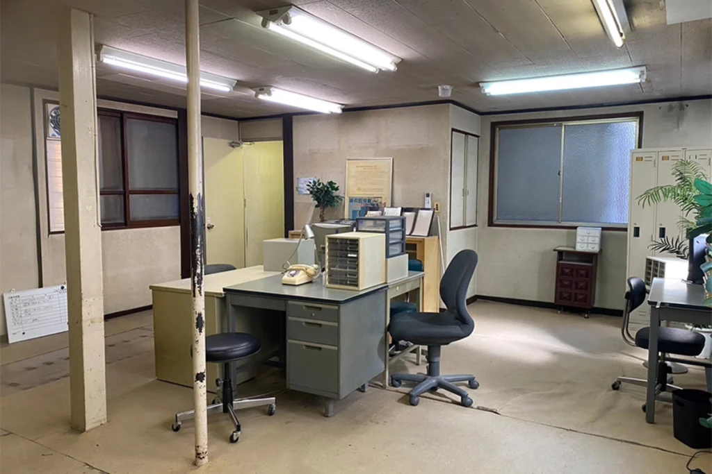3階建で様々なスペースを完備する工場になります。剥き出しの鉄鋼や白熱電球が廃墟的な工場のロケーションを演出しており、アングラなシーン撮影におすすめです。1階〜3階、屋上までフロアが分かれており、警察・刑事・探偵などの動きのあるアクション系の撮影にも対応できます。黄色いラインが入る工場らしいグリーン床は一部剥げ、セットでは作れないスケール感があります。工場では珍しい3階建で、どこを切り取っても画になり多彩なカットやアングルを狙えます。