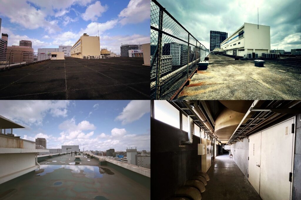〜階段や通路などの共用部も撮影できる!直線100mの圧倒的なスケールを誇る商業ビルの巨大な屋上〜