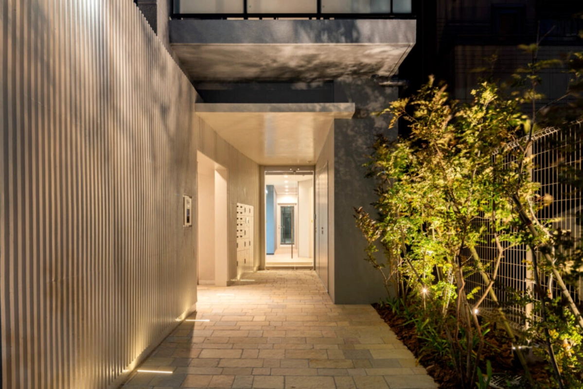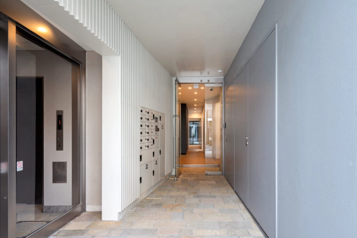 デザイナーズマンションの共用部やエレベーターを、ドラマ、映画、CMなどのシーン撮影のロケ地として貸出しております。居住している方や民泊利用されている方もおりますので、完全貸切での撮影は難しくなりますので、ご了承くださいませ。スマートなエントランスとシックでハイセンスな共用部で、多彩なマンションシーンの撮影におすすめです。お気軽にお問い合わせください。
