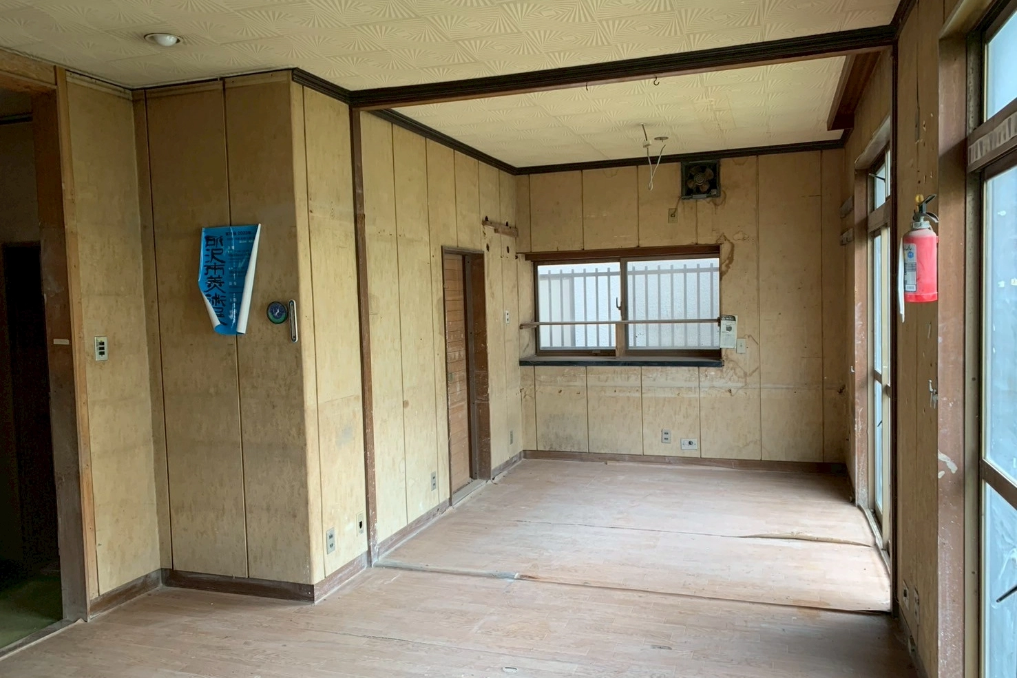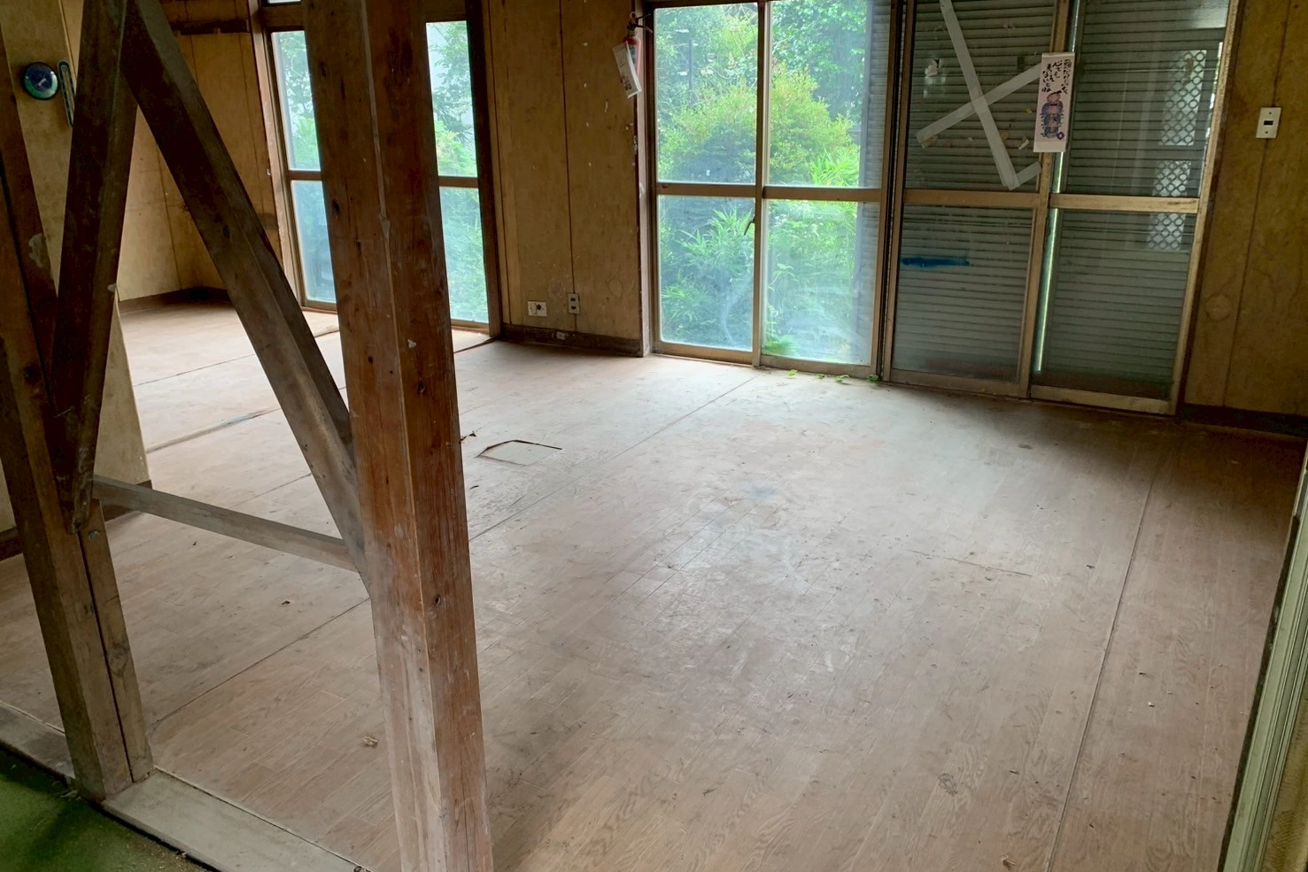所沢にある雑草が長く伸び、廃墟的な室内の空き家