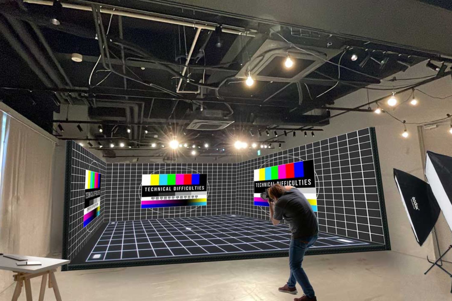 正面に300インチの大型LEDビジョンと、左右下の3方向から囲う4面1体型のLEDビジョンが常設されている撮影スタジオです。LEDビジョンに特化したLED TOKYOだからこそ出来る、圧倒的没入感のある映像演出が可能です。常設機材のご利用はもちろん、機材の持ち込みも可能です。