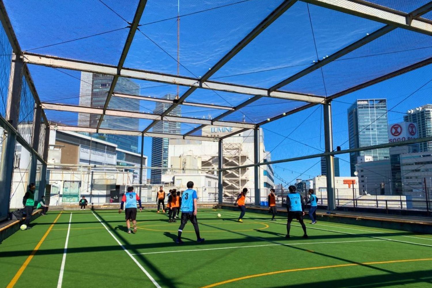フットサルコートが2面あるビル屋上のスポーツコートです。貸切利用もでき、撮影・ロケにご利用いただけます。 レンタル商品も充実しており、シューズやウェアの貸出していますので、手ぶらで来ても大丈夫です!