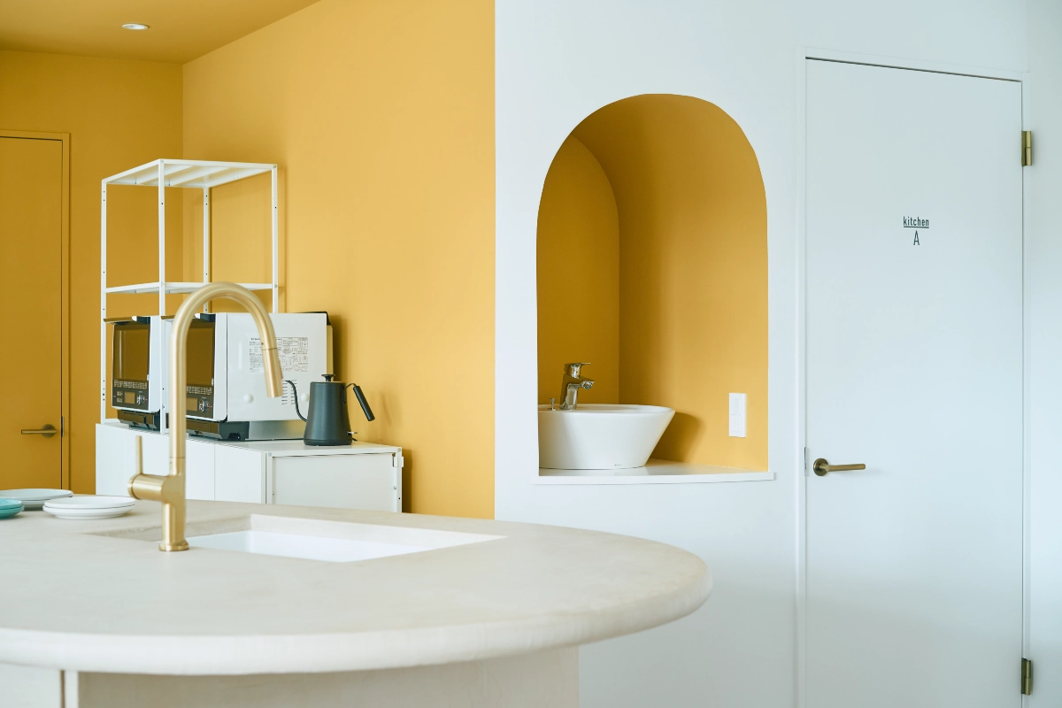 おしゃれなカフェやスイーツ店のようなロケーションとしても活用できる多目的キッチンスタジオです。優しいグリーンとイエローを基調にしたキッチンスタジオには、本格的なショーケースも完備しているので、実店舗では断られる撮影や日中時間帯も撮影できるのが最大の魅力です!一般的なキッチンスタジオとしての用途を超えた撮影・ロケにお待ちしております。ドラマ、映画、CM、再現ドラマ、MVなどのシーン撮影から、バラエティ番組の料理企画やインサート撮影など、お気軽にお問い合わせください。