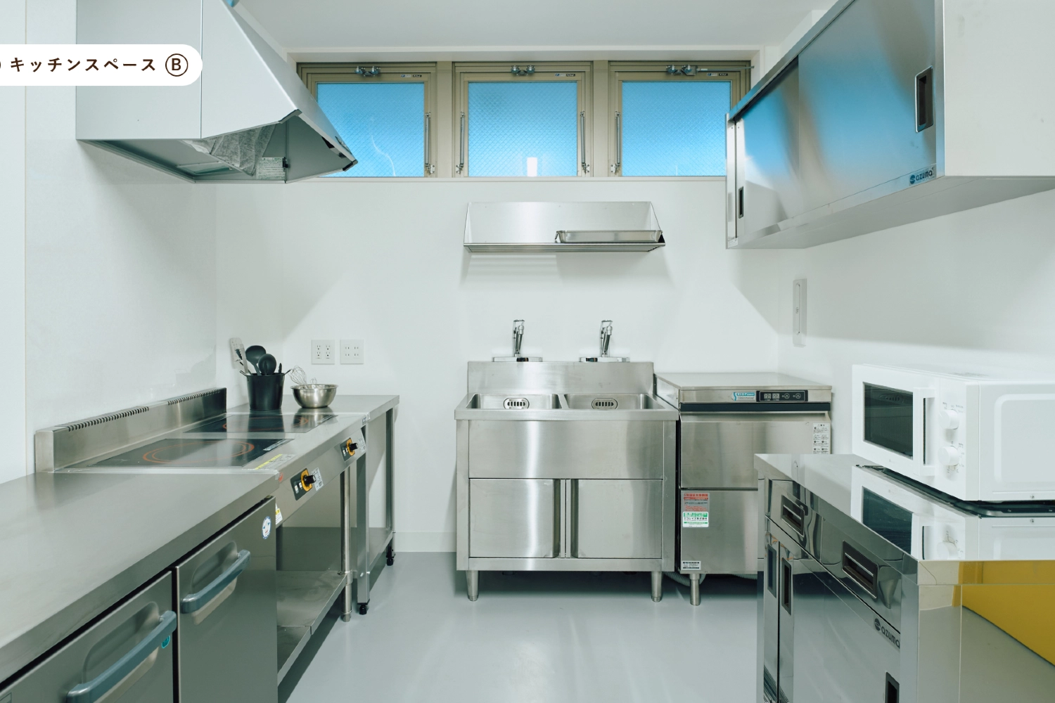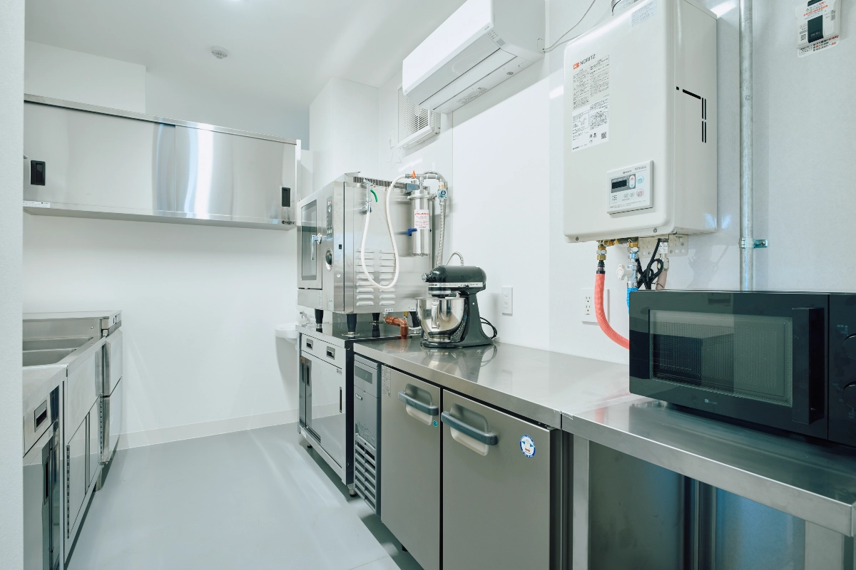 菓子製造及びそうざい製造許可のある2つのキッチン・厨房もございます。スチームコンベクションオーブン、スタンドミキサー、ハンドミキサーなど本格的な調理設備を完備しています。食洗機もあるので、レストランやカフェの裏側の料理シーンや厨房のシチュエーションも撮影できます。料理企画の時は、スタッフの仕込みやサポート部隊の厨房などとしても機能します。