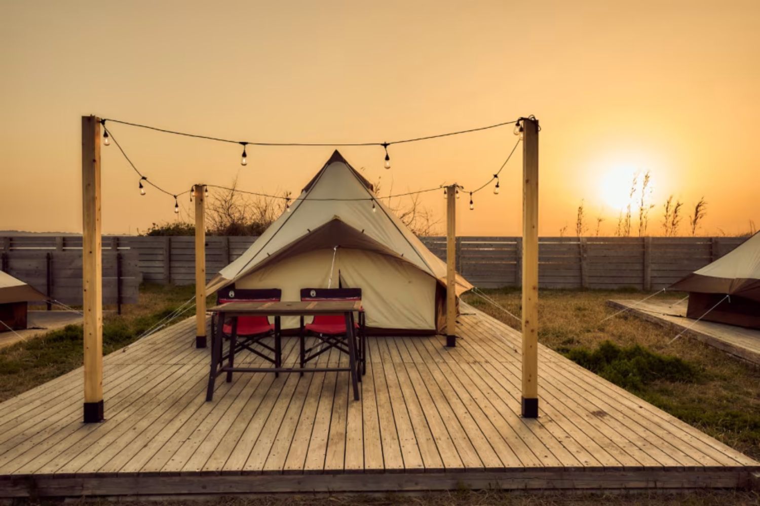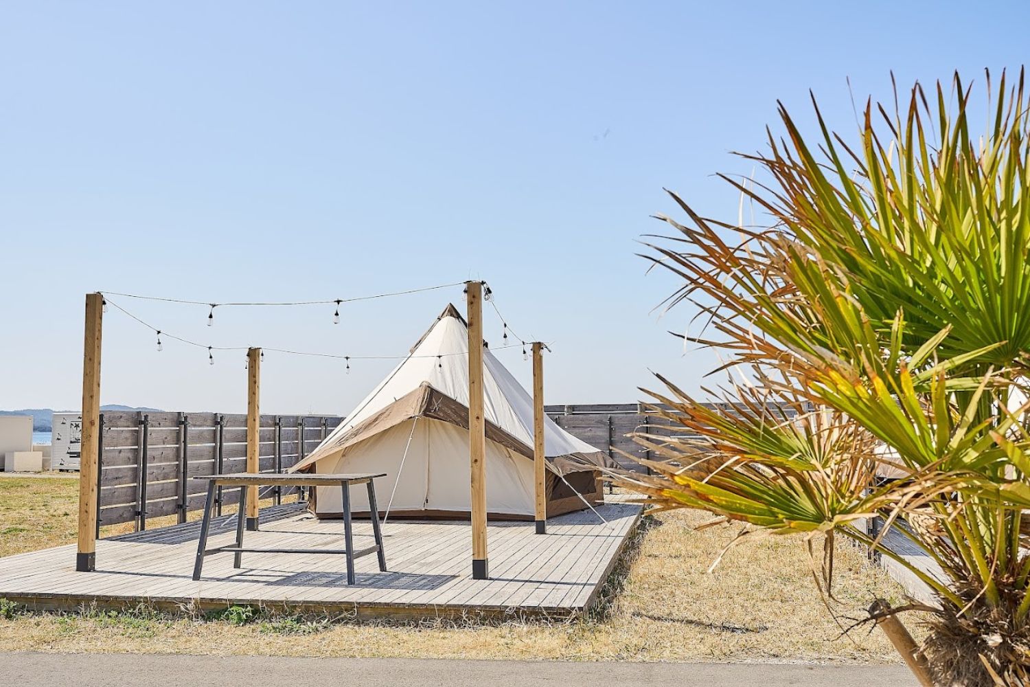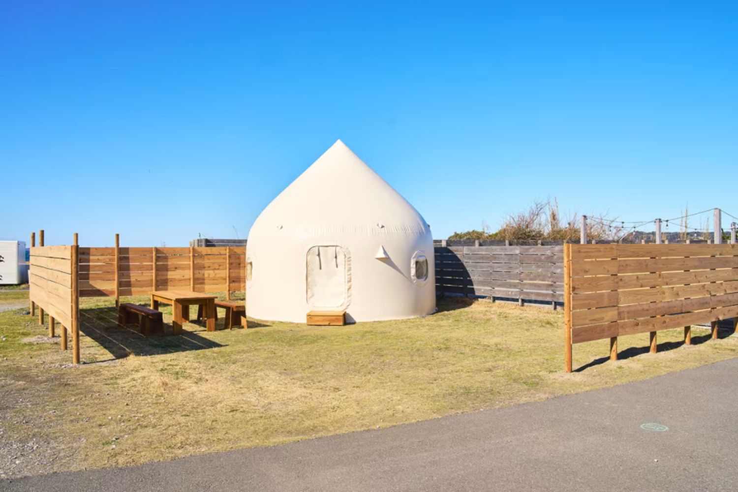 徒歩0秒の海岸直結の水平線ロケーションが圧倒的!多彩なサイトと設備を兼ね備えるグランピングサイト