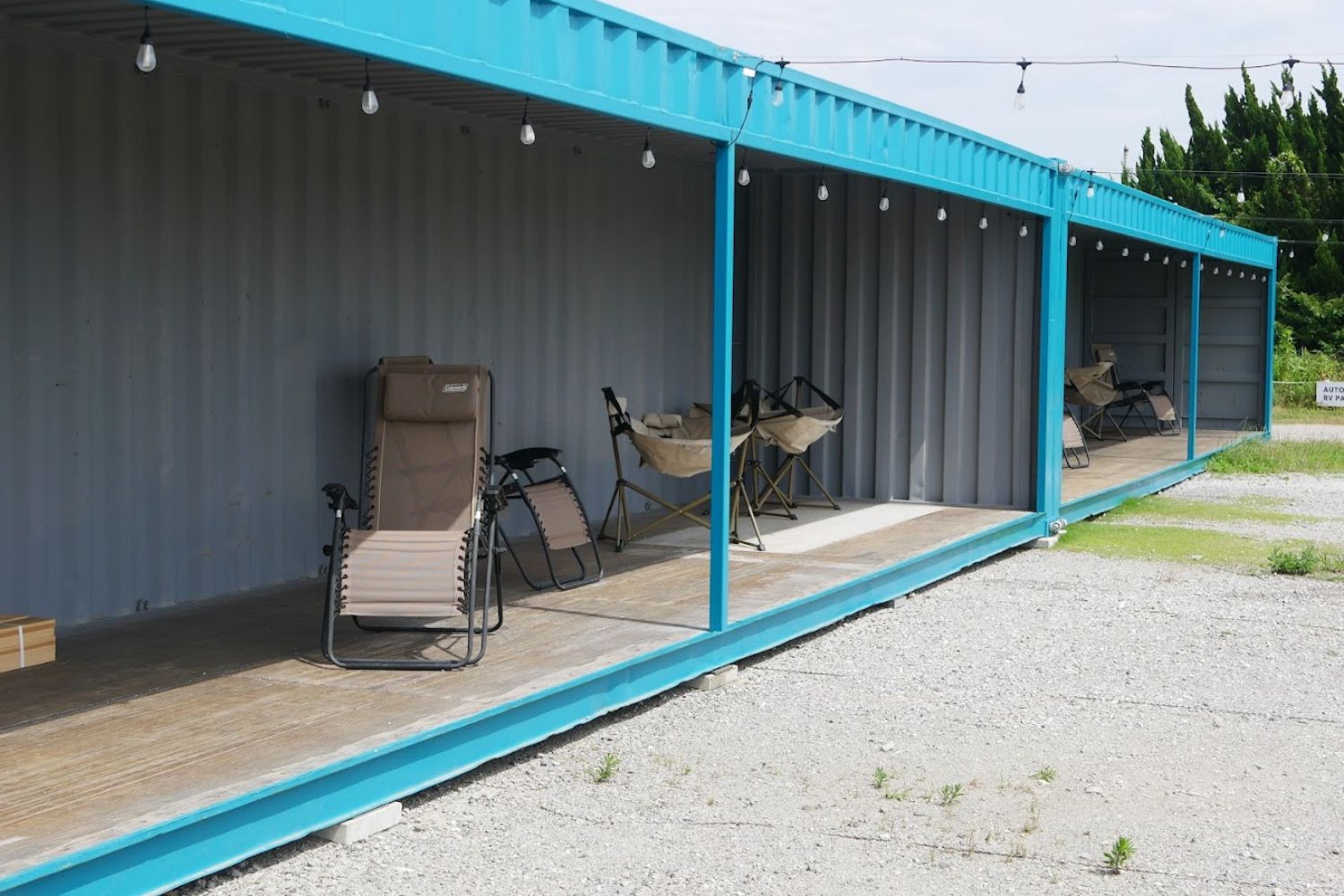 人工物がない抜群の抜け感!コンテナ・ヤシの木など西海岸を彷彿させる2500坪の平地キャンプ場