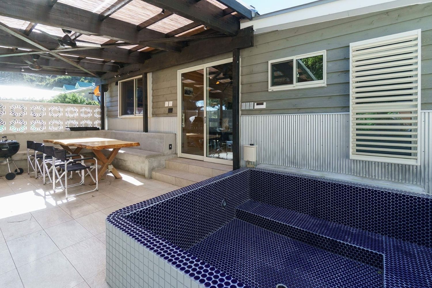 ▪️屋外にジャグジーと樽型サウナを完備