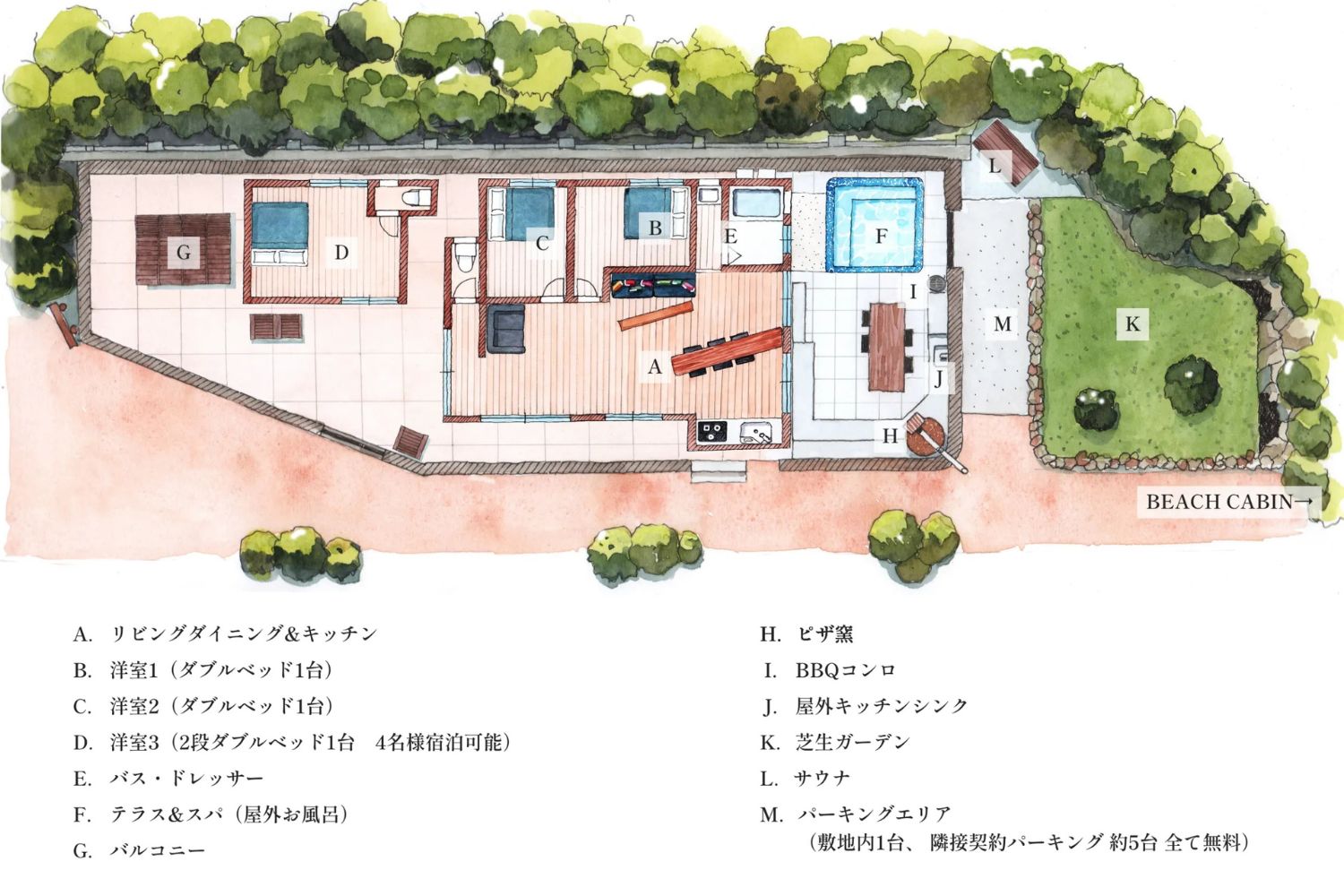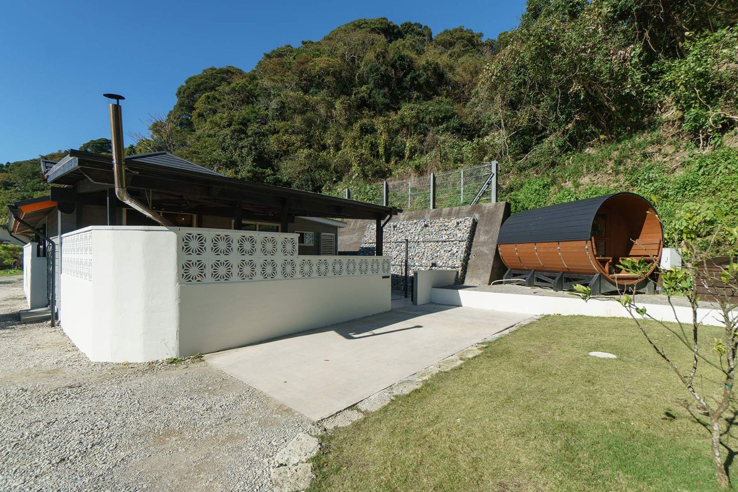 海と山に囲まれたプライベート空間で、樽型サウナと露天風呂を独り占めできるヴィラです。日常を忘れ、極上のひとときを。ジャグジー、サウナ、日光浴で心身をリフレッシュ。自然に囲まれた特別な空間で、あなただけのリラクゼーションタイムをお過ごしください。