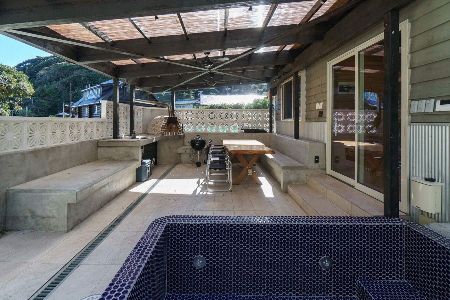 本格的なピザ釜と露天風呂を兼ね備えた自分だけの贅沢なバルコニーが人気の贅沢ヴィラ