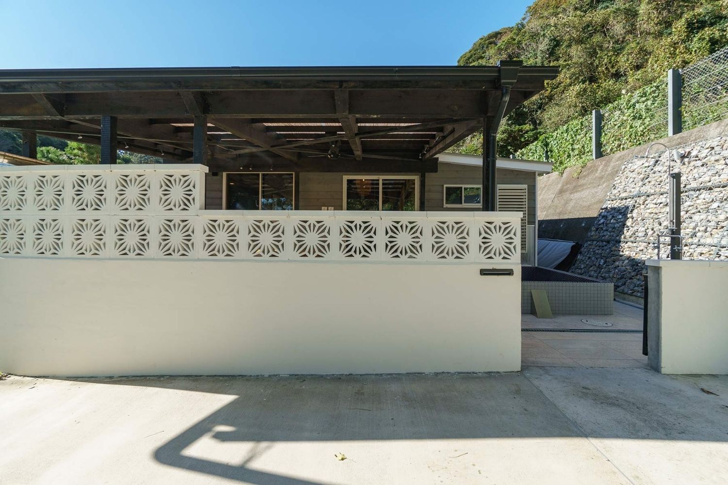 都会の喧騒を離れ、自然に囲まれた空間で、自分だけの贅沢な時間を味わえるヴィラです。本格的なピザ釜と露天風呂を兼ね備えたバルコニーが、特徴的であり撮影に人気です。また洗練されたデザインと木の温もりが調和するLDK、窓から光が差し込むタイル調のバスルールでの撮影もおすすめです。長いエントランススペースを利用した奥行きある撮影もでき、室内外ともにドラマ、映画、CM、MV、グラビアなどでぜひご利用ください。