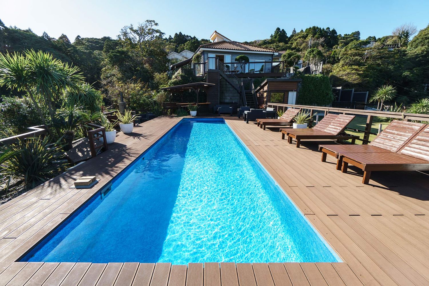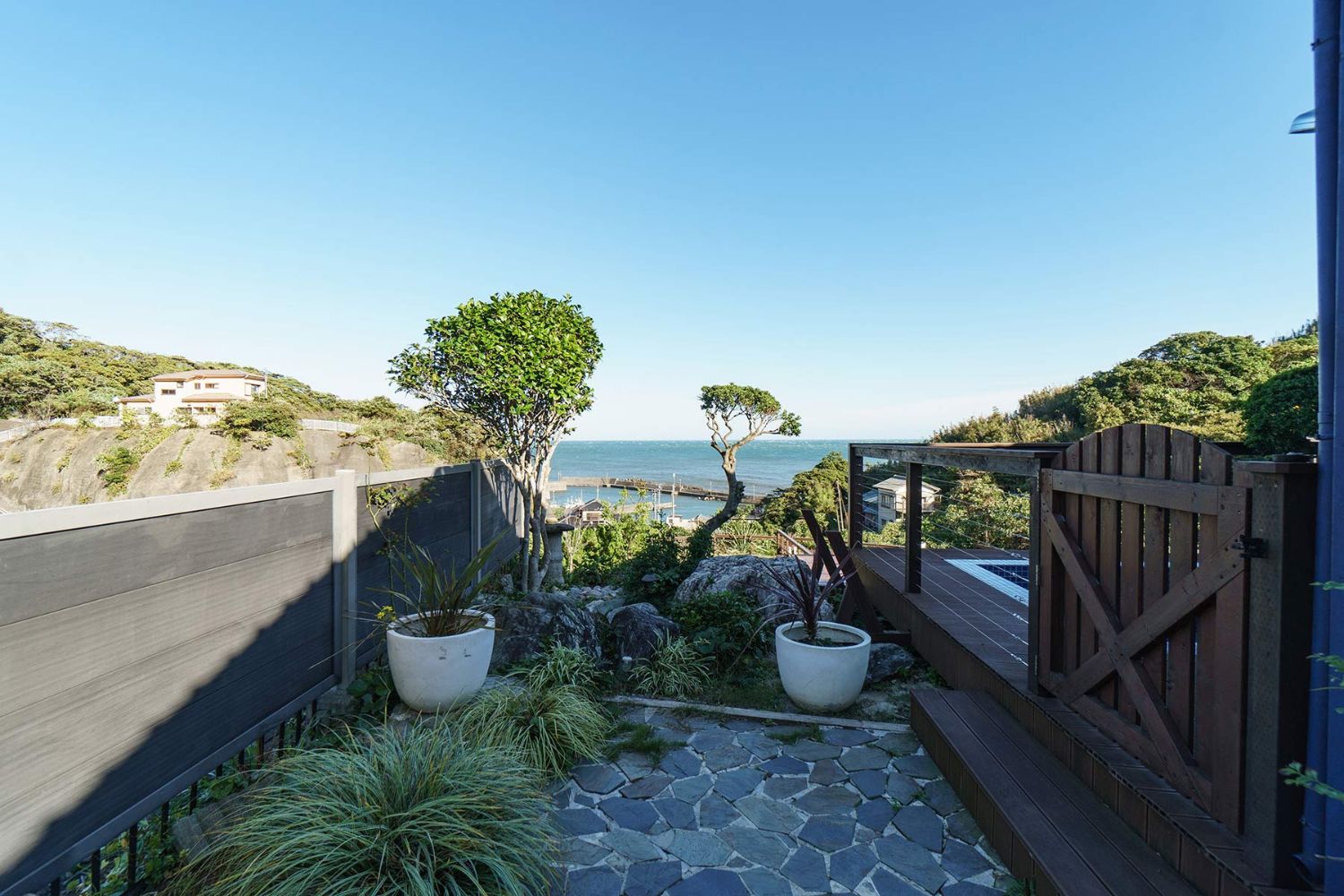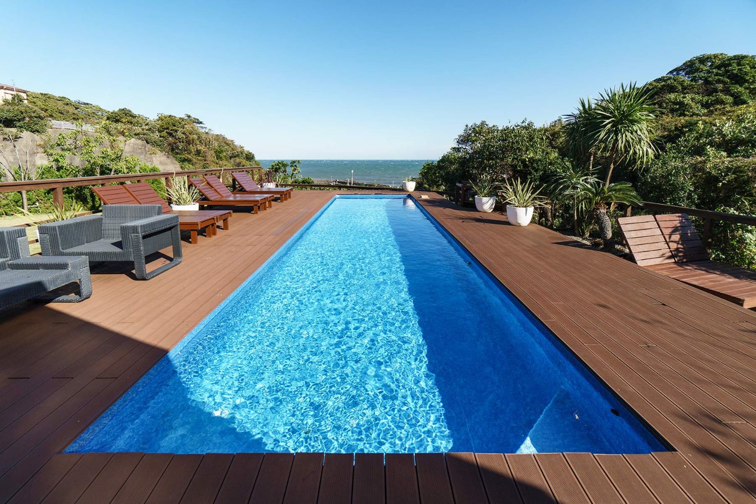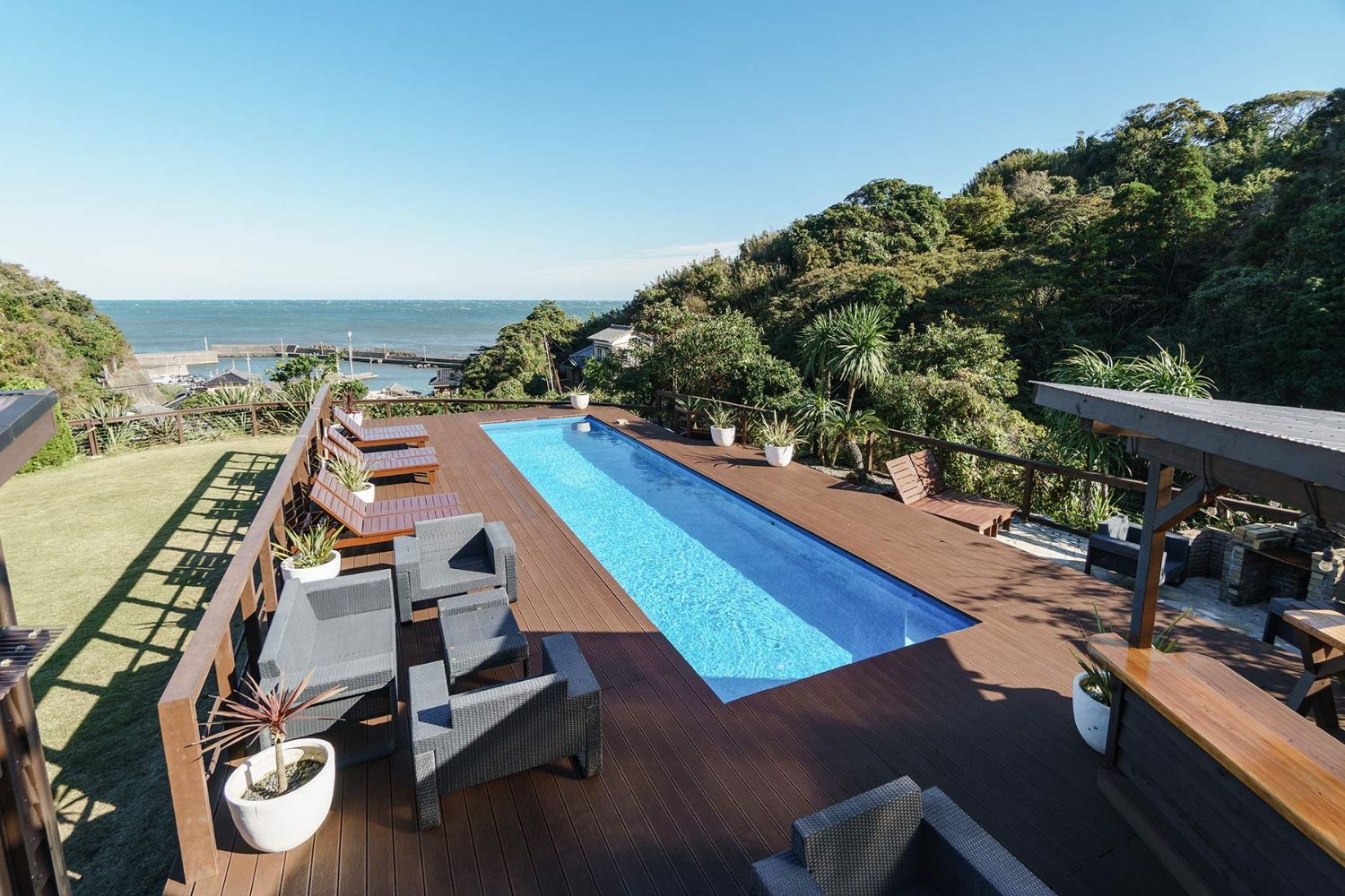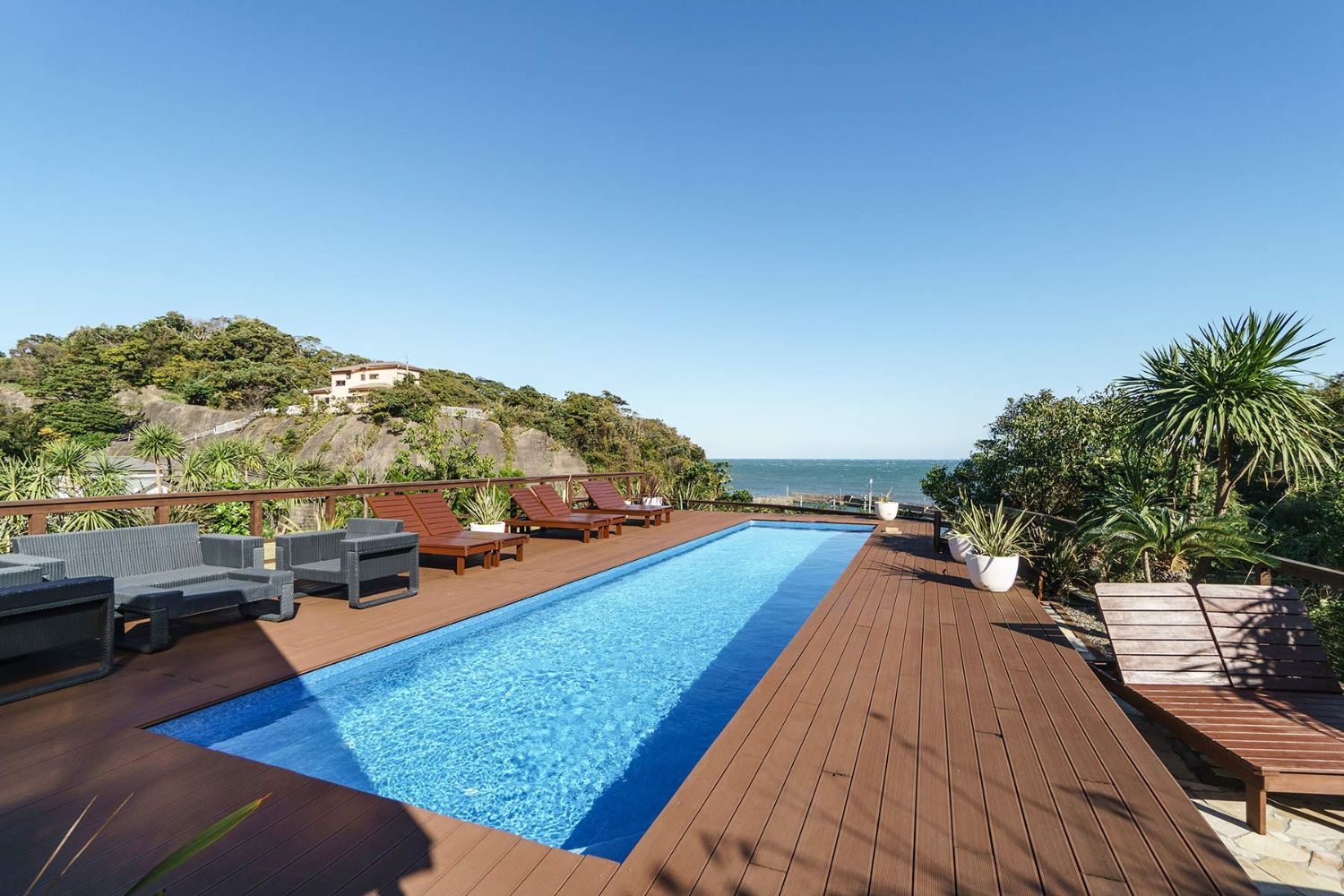 太平洋一望できるガーデンプール!海と緑に囲まれた絶景ロケーションが自慢の丘に佇む個人住宅