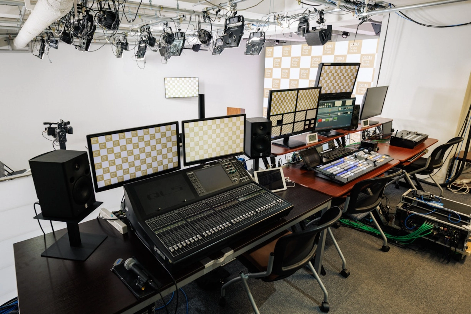 進化し続けるお客様や時代のニーズに応えるため、この度オープンした業界内でもトップクラスのスタジオ、それがCROAK Prime Studioです。スケールアップしたスタジオや、フレキシブルスペースの新設により、大規模イベント中継やプレス発表会等にも幅広く対応。また、e-Sportsの分野でも、最高峰案件に携わっている実績をさらに拡大させていきたいと考えています。その名の通り、プライム・クオリティをお届けするCROAKの新しい顔にご期待ください。