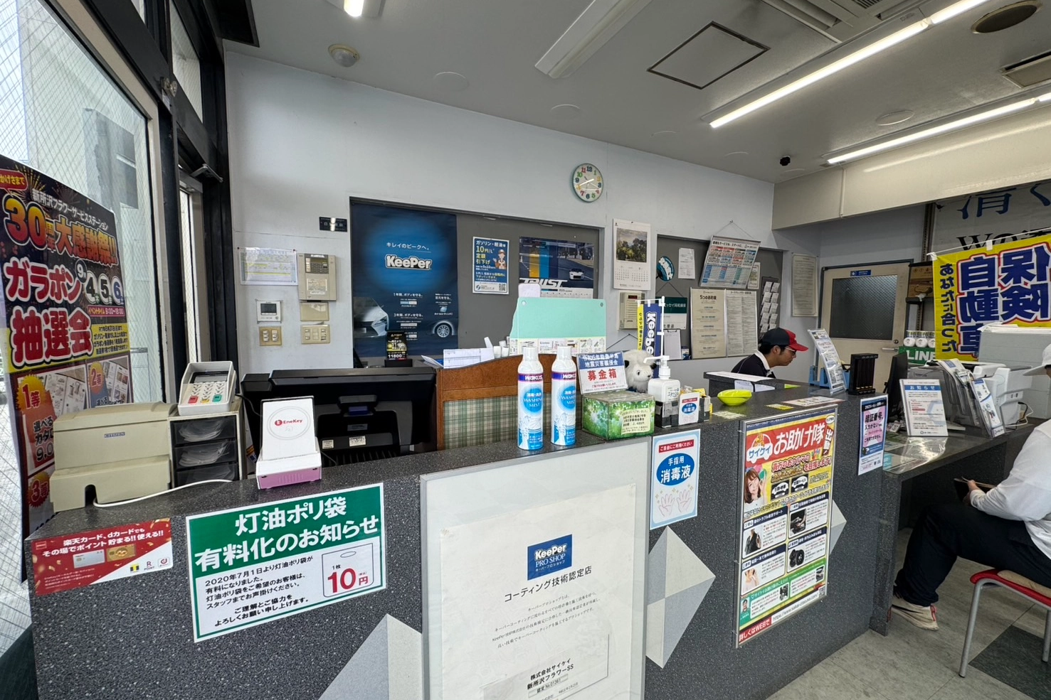 給油機2基と洗車場を備えるフルサービスガソリンスタンド