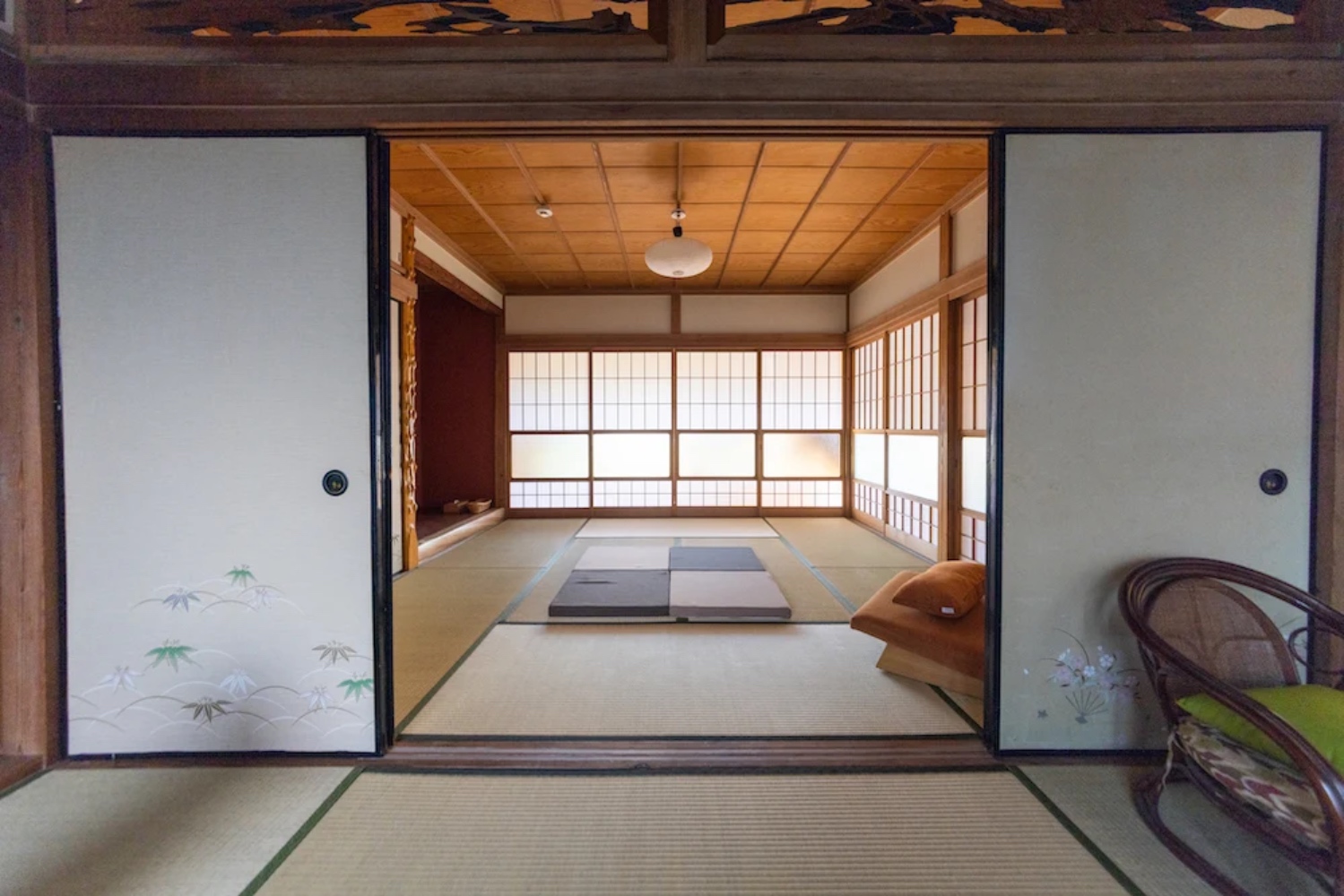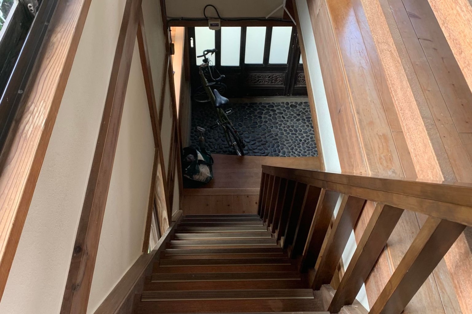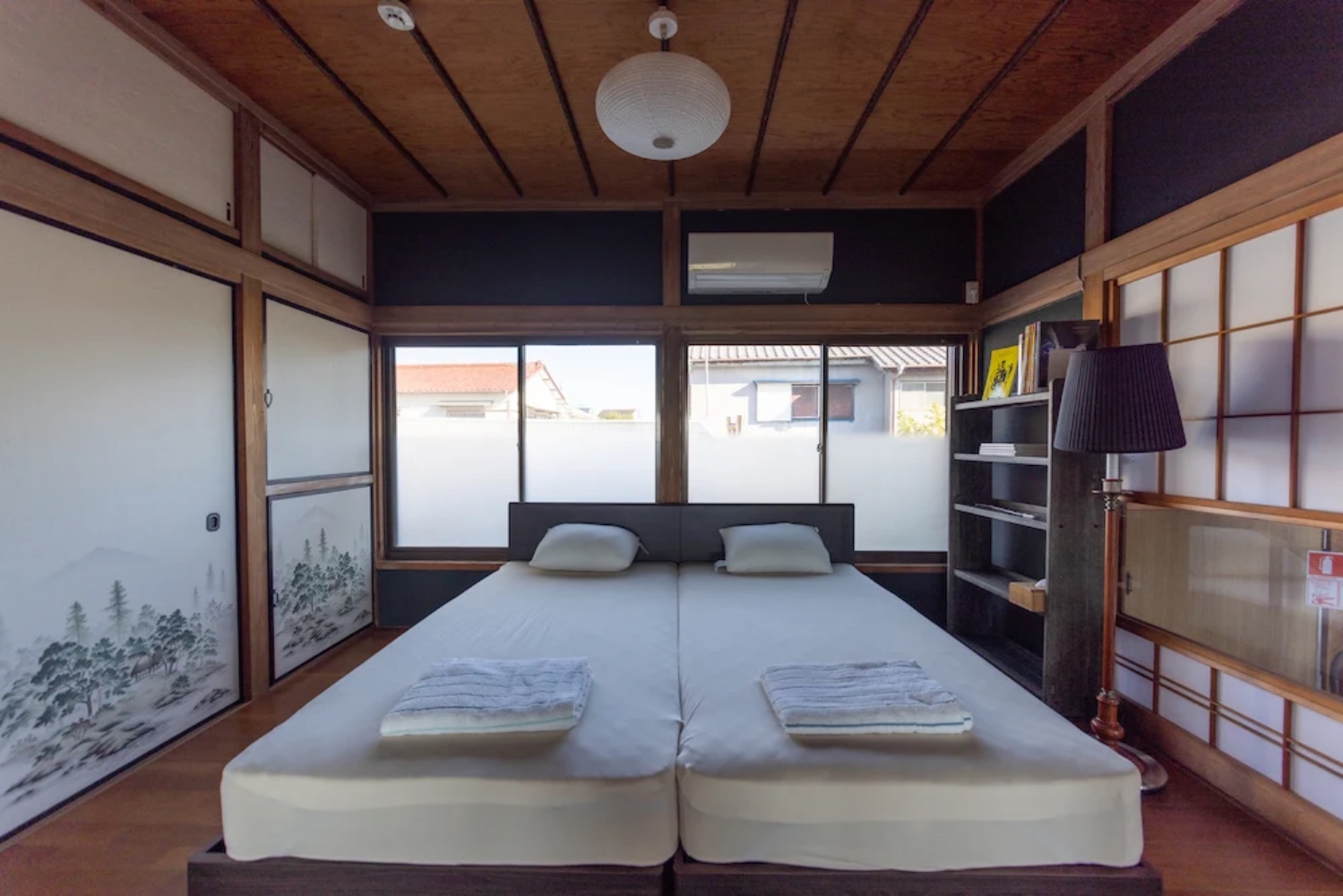 内房の穏やかな海を臨む、富浦の原岡桟橋近くの一棟貸別荘です。間取りは4LDK。L字カウンターが特徴的な18畳のオープンキッチン。さらに合計14畳の広々とした和室。2階は階段を上ると原岡海岸が眺望できる踊り場、8畳の和室と6畳のフローリングのベッドルーム。カウンターキッチンでお食事とともに盛り上がりながら、お休みは1階和室と2階とに二組(男女、家族)に分かれてのご利用も可能。特に2階は静かで優雅な時間をお過ごしいただけます。地元の新鮮な食材で料理したり、語り合ったり。タイミングが合えば、桟橋越しの夕陽と富士山にも出会えます。