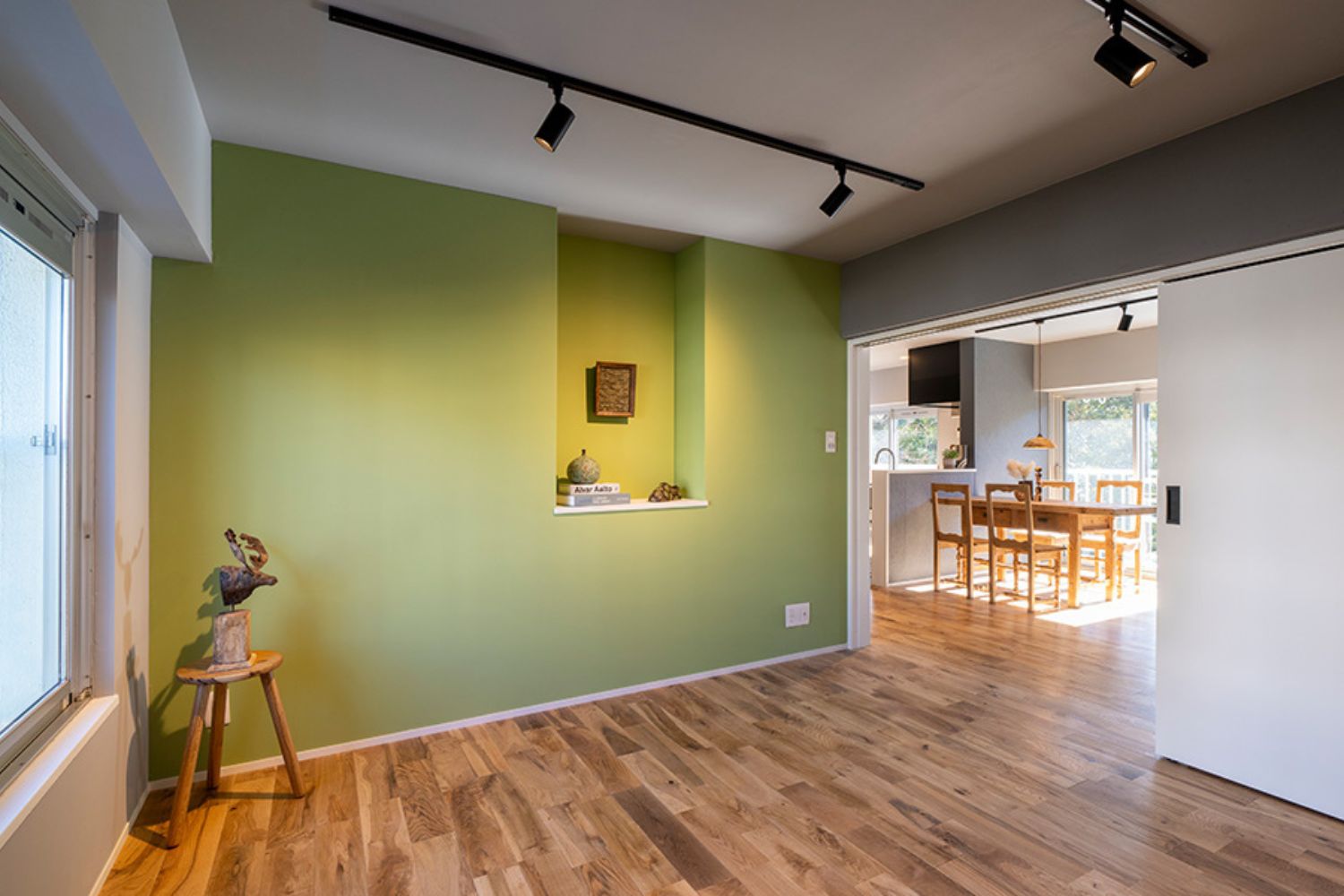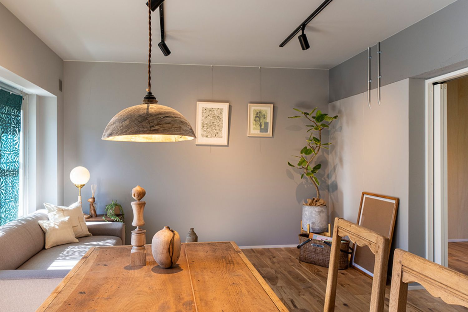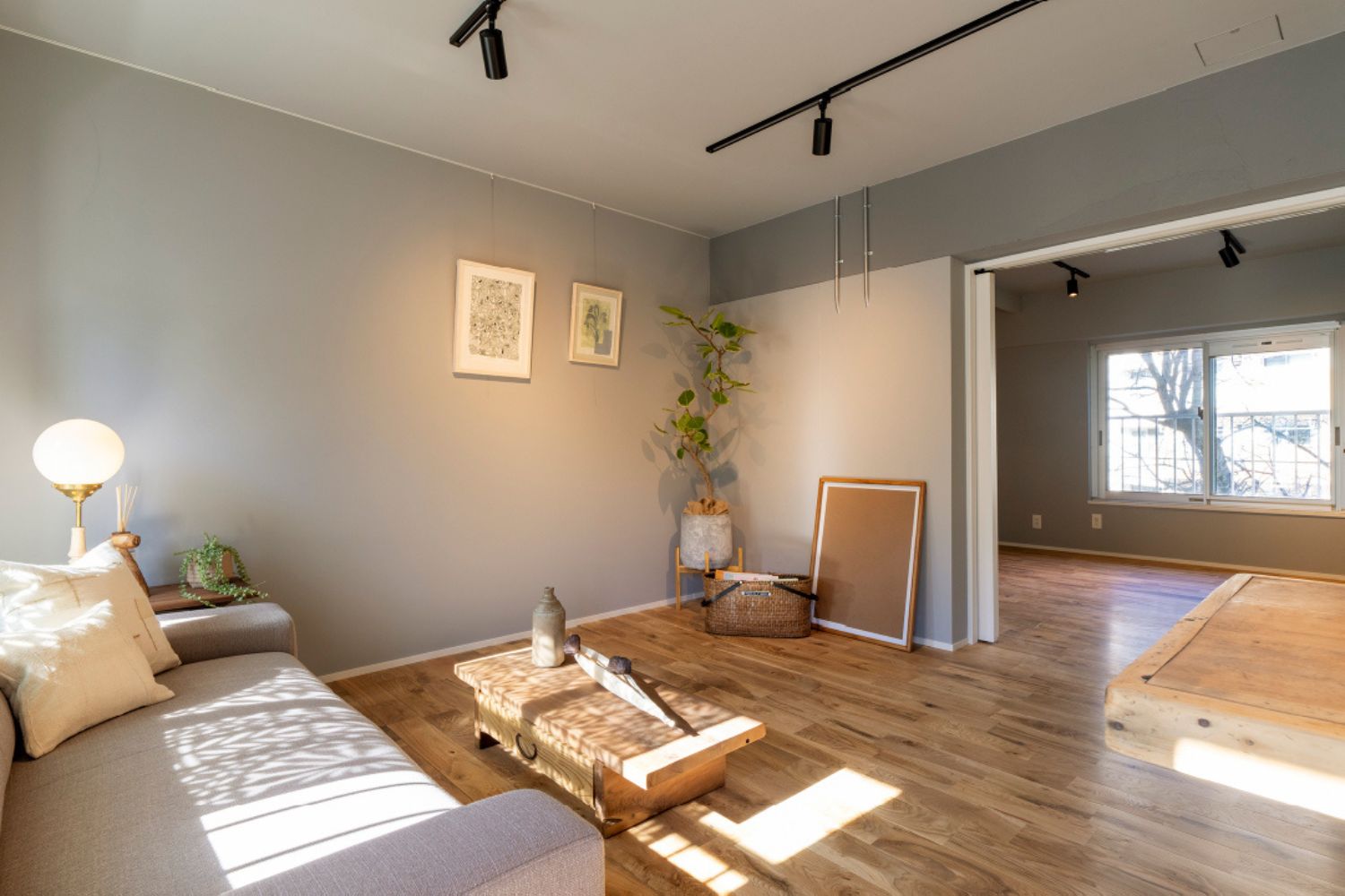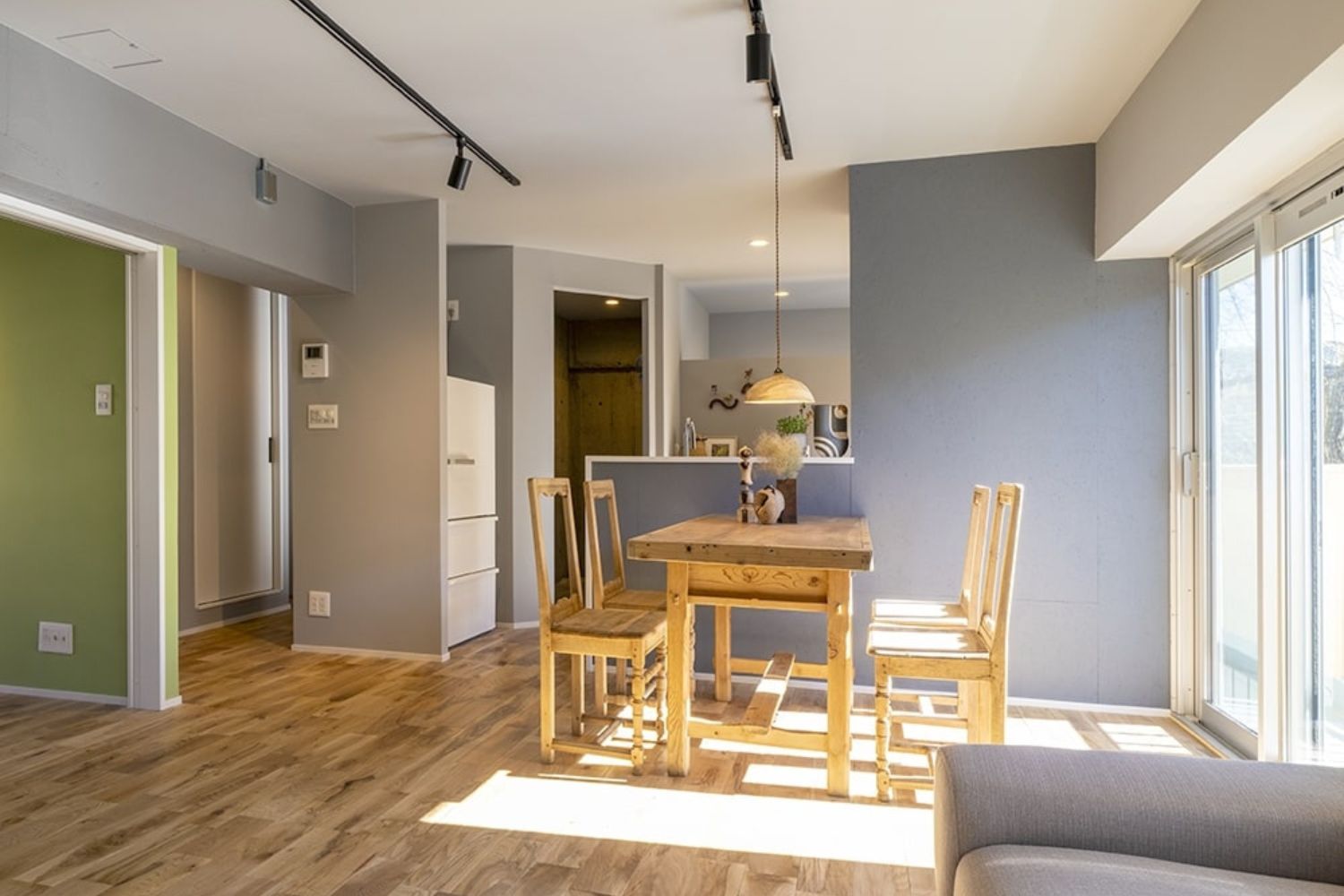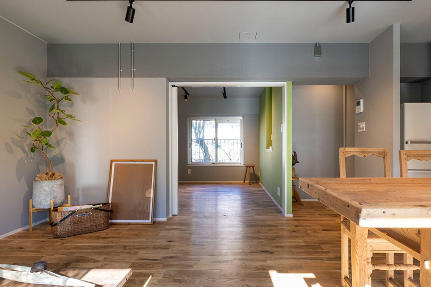 無垢の床材と塗装仕上げのナチュラルな壁だから経年変化を楽しめる団地の完全フルリノベ物件