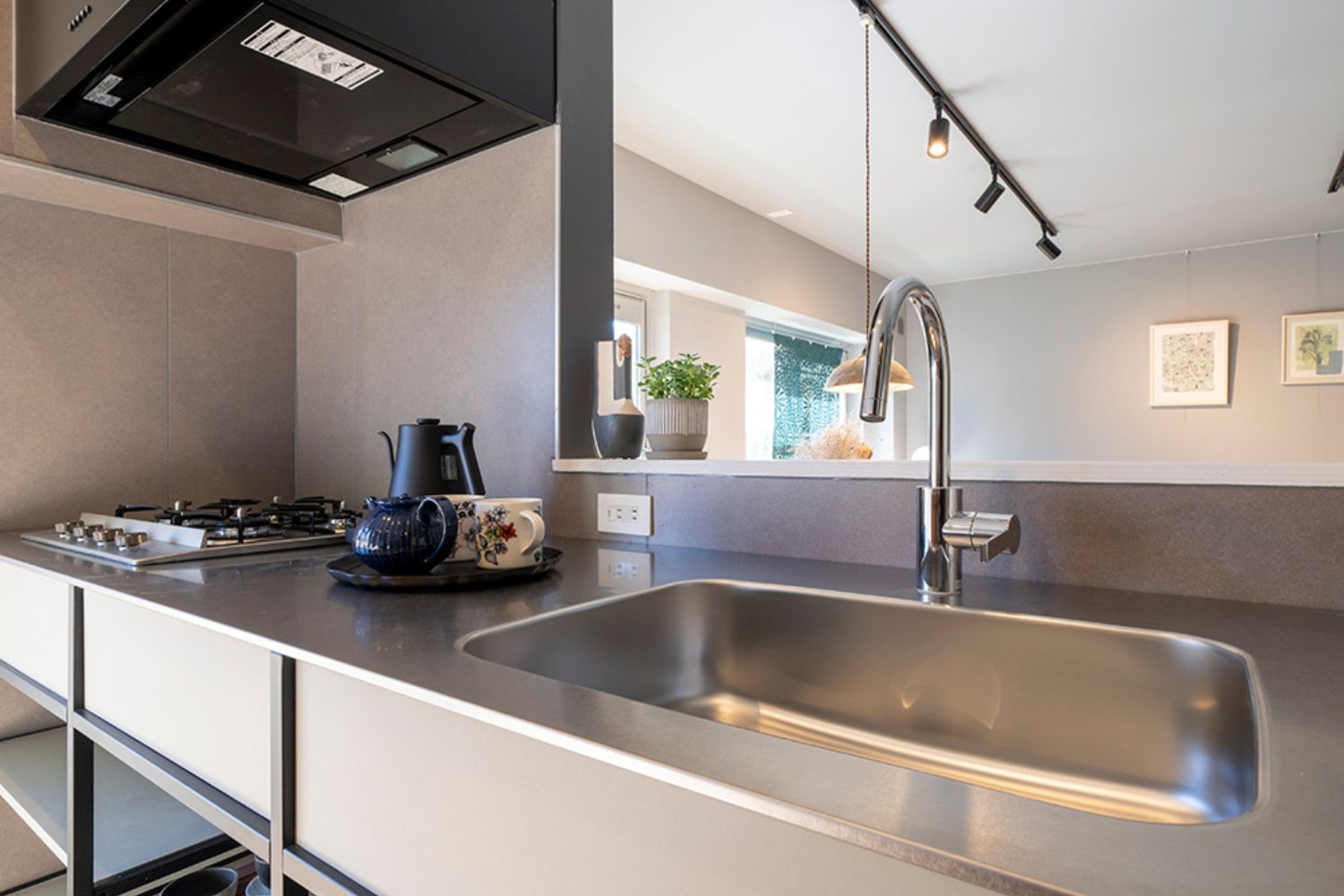 ケーススタディハウスでは、経年変化が楽しめる上質な素材を用いて、完全フルリノベーションを行いました。無垢の床材や塗装仕上げの壁はナチュラルな空間を演出するだけではなく、住まい手の個性に染めることができるシンプルさを備えています。また、新栄団地では珍しい対面キッチンを採用し、広々としたLDK空間を実現しました。LDKの隣に配置した主寝室の扉を開け放てば、風通りはさらによくなり、開放感もアップします。住むほどに愛着と味わいが増す住まいです。