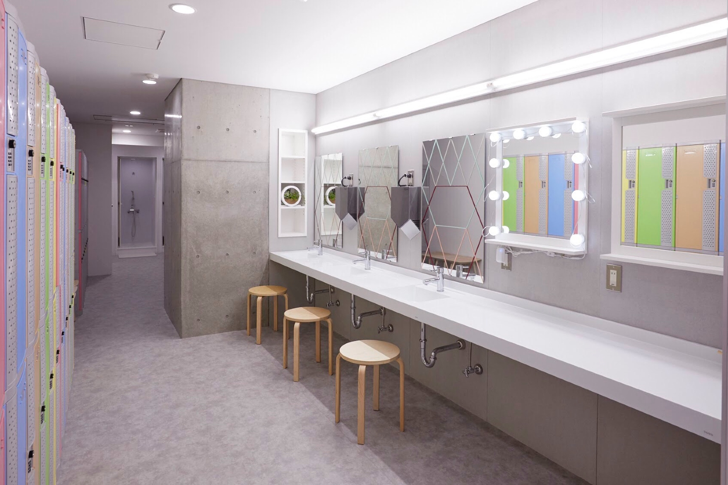 複数のフロアに控室と更衣室を備えています。出演者の楽屋から再現ドラマやシーン撮影でもご利用ください。個室から大部屋まで用意できますので、お気軽にご相談ください。カラフルな更衣室には、シャワールームも併設していますので、ダンスやバラエティロケなどで、汗をかいたり、汚れた時も、簡単に洗い流すことができます。