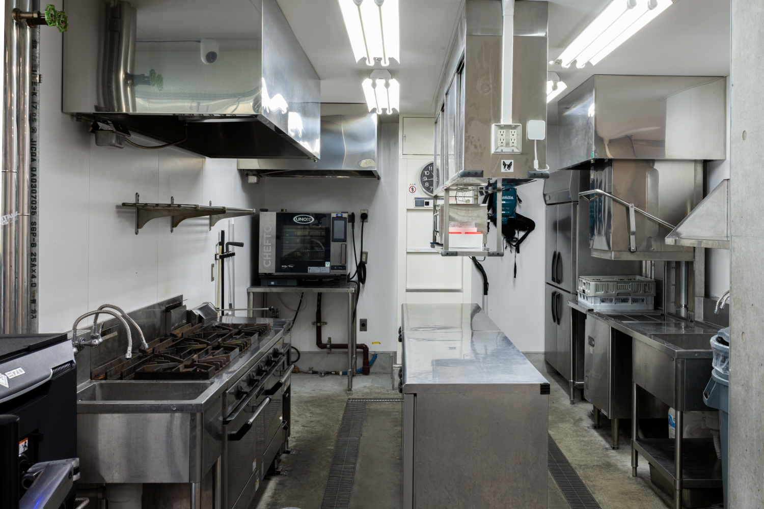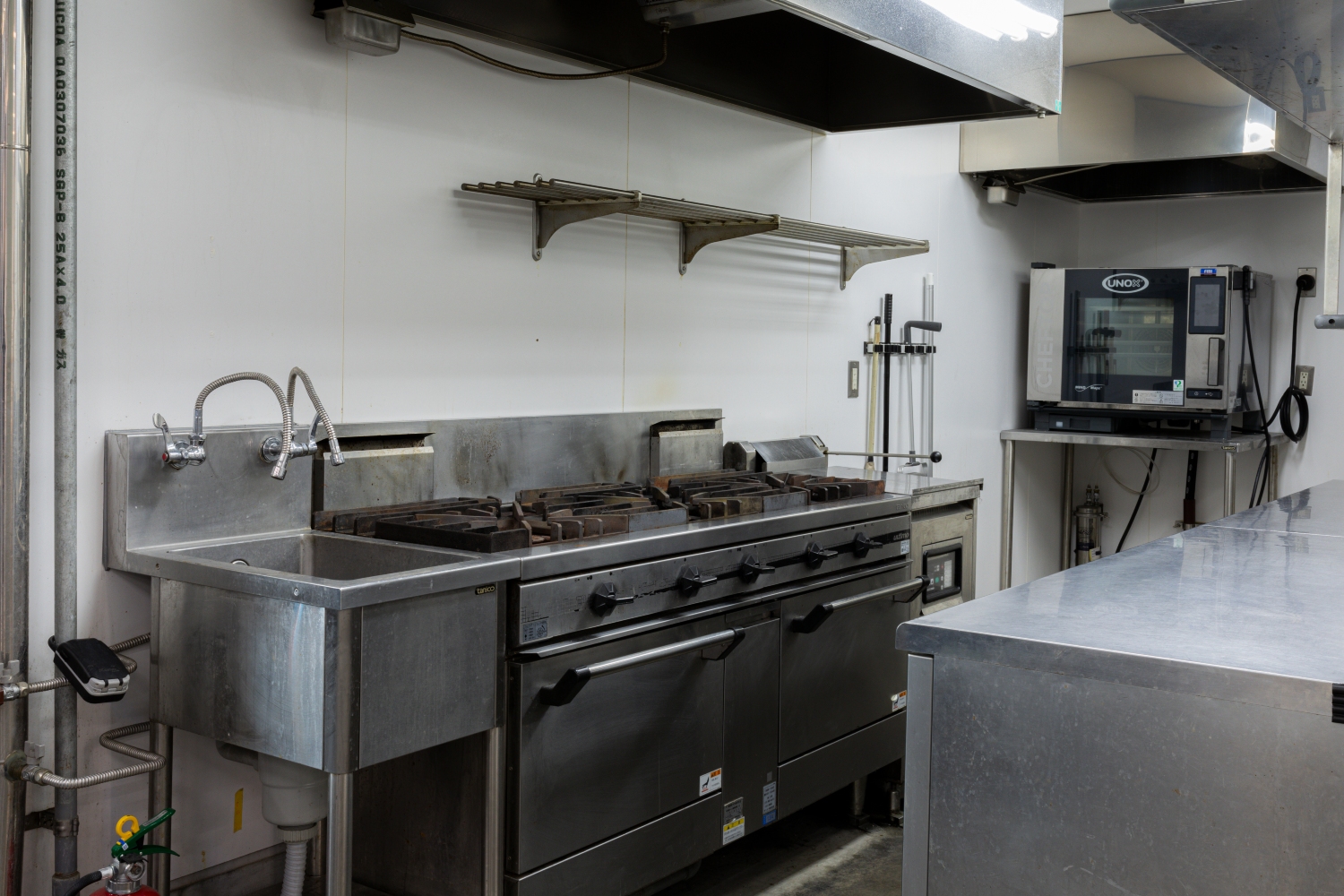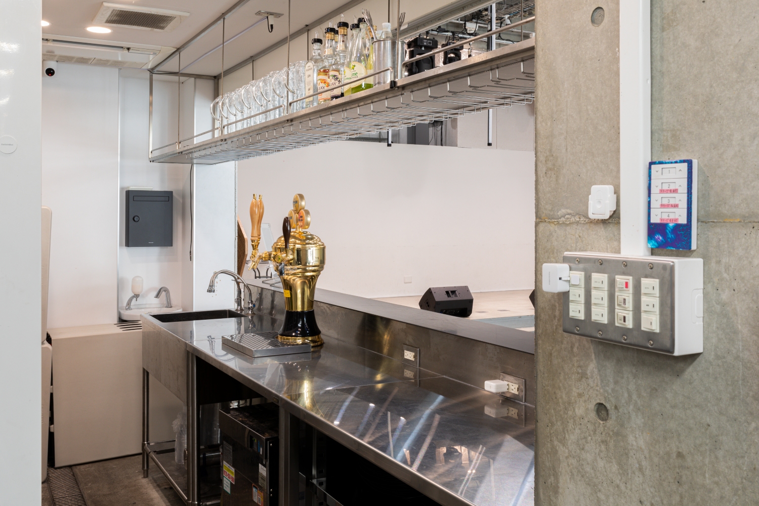 ドリンクカウンターや広い厨房も完備しており、そちらも撮影・ロケでご利用可能です。ライブハウスのバーカウンター的なロケーションとしても使えますし、縦型ドラマなどのコンパクトな撮影にもおすすめです。飲食店営業許可もございますので、イベントやPOPUPなどの飲食営業のスペースとしても対応可能です。