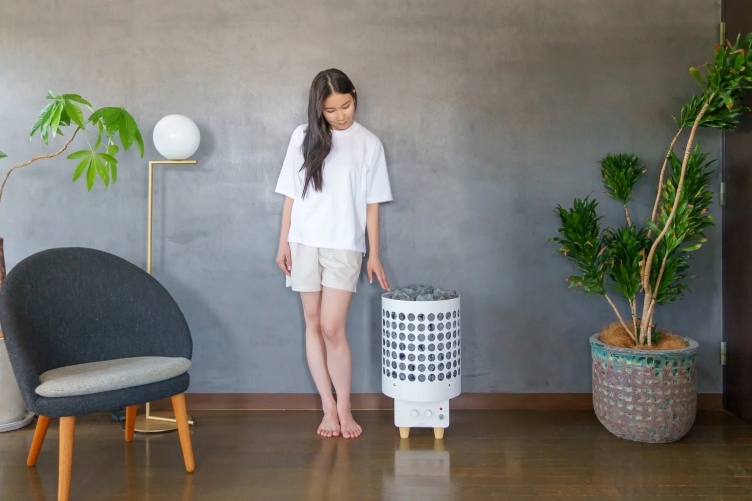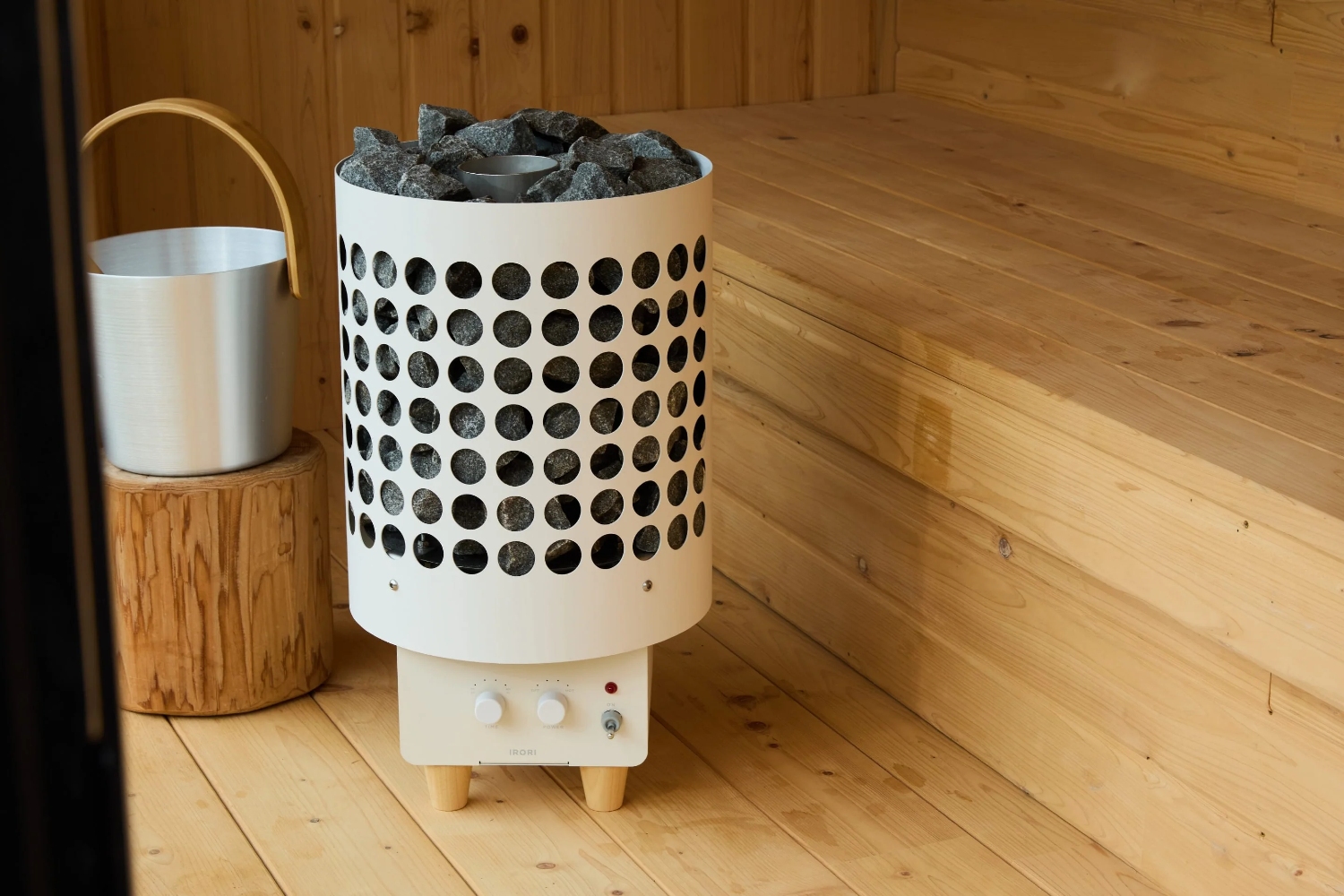 大田区の町工場と連携して、世界初のスチーム国産サウナストーブ「IRORI」を開発しました。室内ストーブのように、リビングや寝室など室内で手軽にサウナを行え、またロウリュも可能になります。家庭で馴染む家具のようなデザイン設計にこだわり、白を貴重に、木脚、ネジを隠すなど、おしゃれな白物家電に仕上げました。さらに海外メーカーが主流の中で、国内部品、国内製造を徹底することで丈夫なつくりと万全のアフターフォローを整えています。屋外なら”IESAUNA”。室内なら”IRORI”。