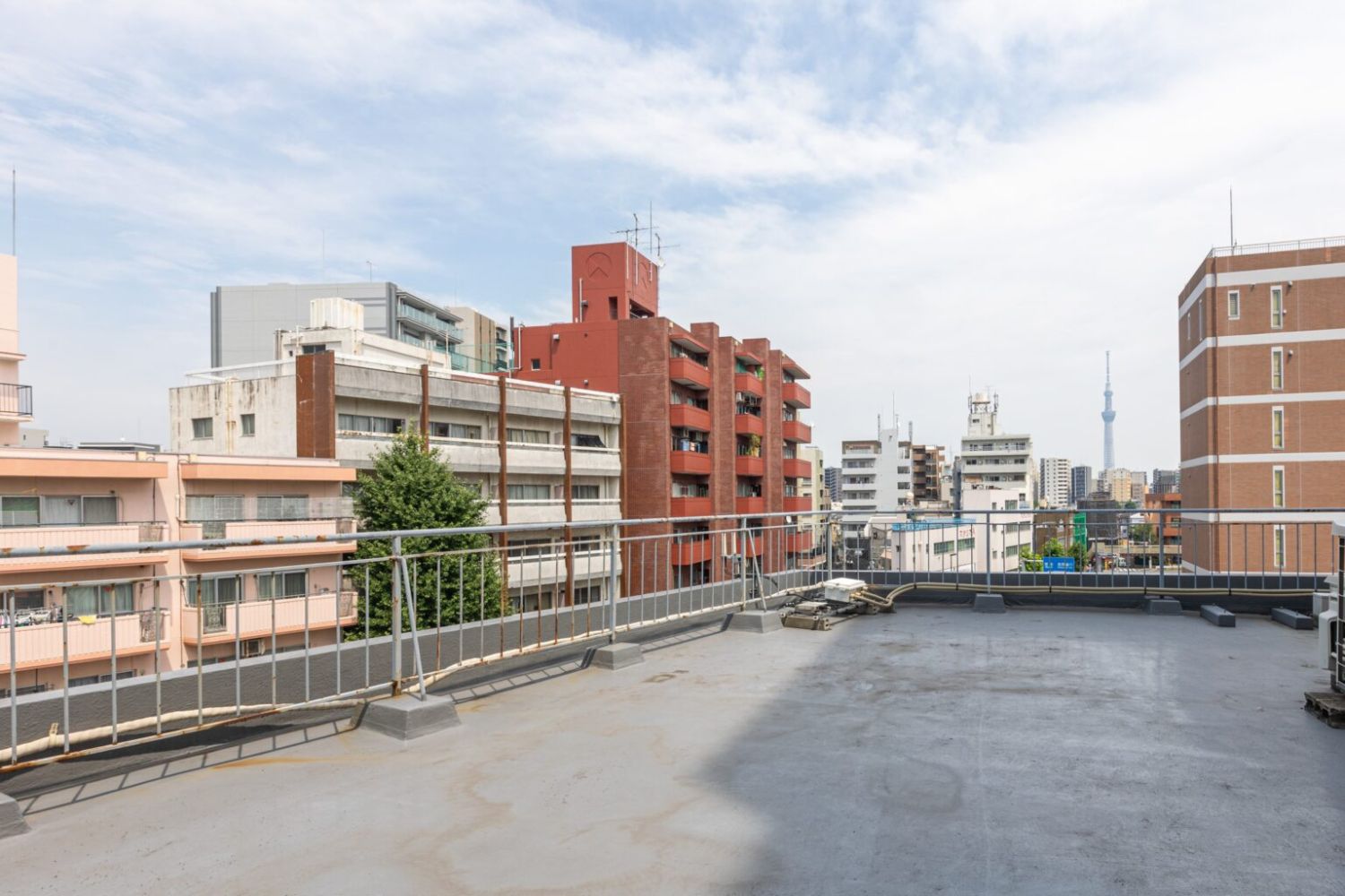 都内によくあるマンションタイプの雑居ビルになります。外観、エントランス、階段、エレベーターなど共有部での撮影可能になります。住宅スペースなどありませんので、入り込みや外観・共用部などのシーン別撮りにおすすめです。また一棟貸切できて入り口から撮影可能ですので、バラエティなどのドッキリロケもやりやすく、多彩な企画に使えます。また、スカイツリーが見える屋上スペースもございますので、ドラマ、映画、再現、MV、CMなどのシーン撮影でもご利用ください。