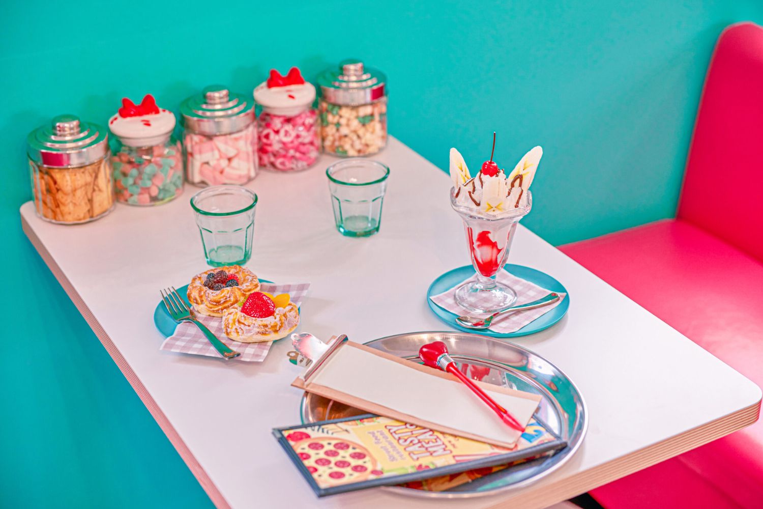 アメリカンダイナー風のとびきりポップでカラフルなスタジオです。ジェリービーンズウォールやスライドウォールで14シーン以上のシーンが揃う広々スペースになります。