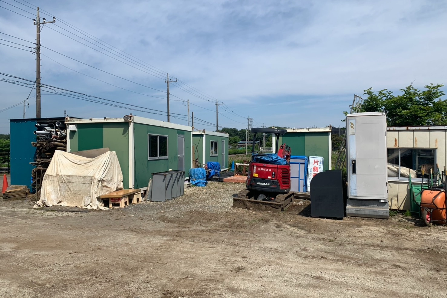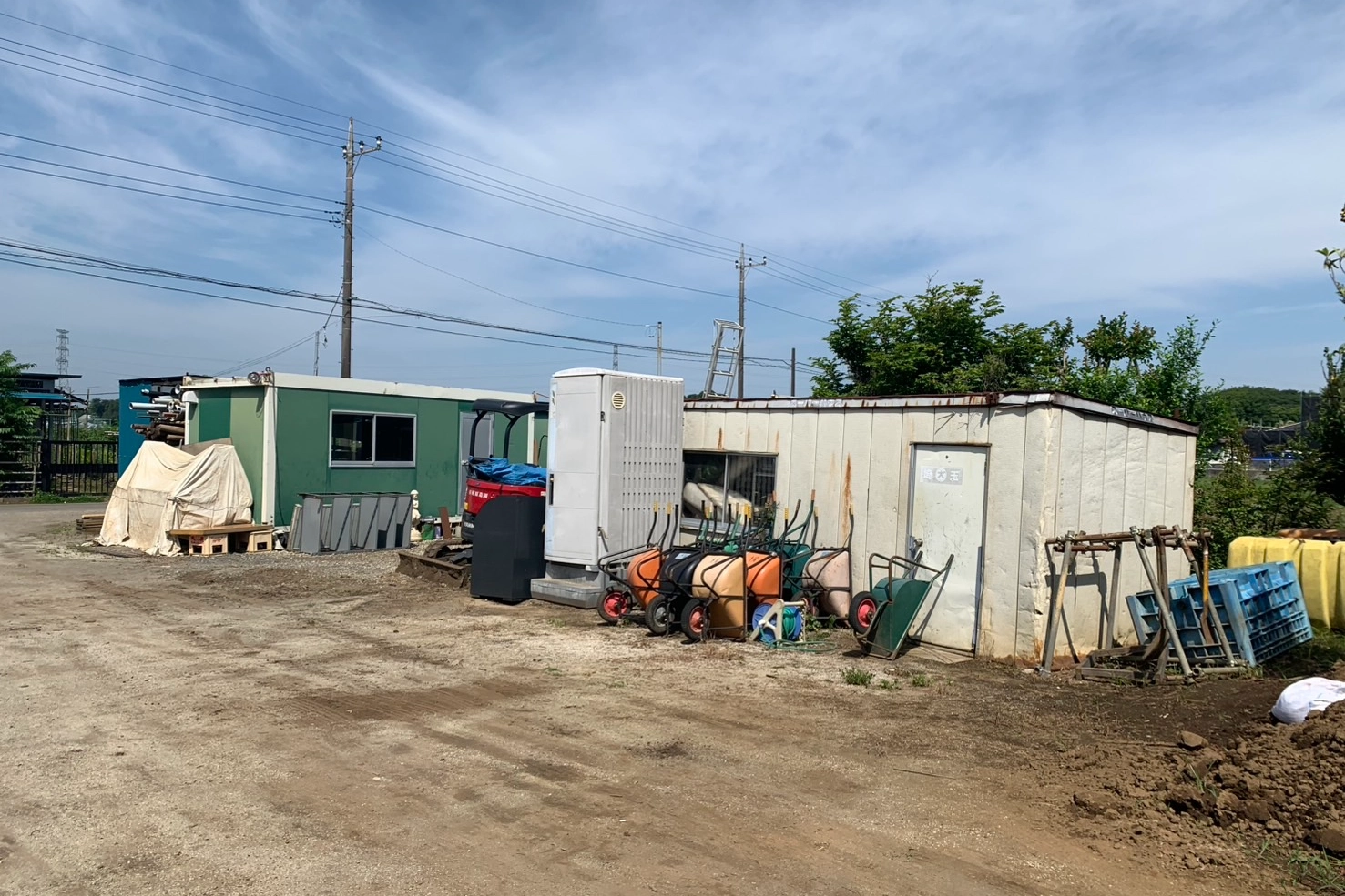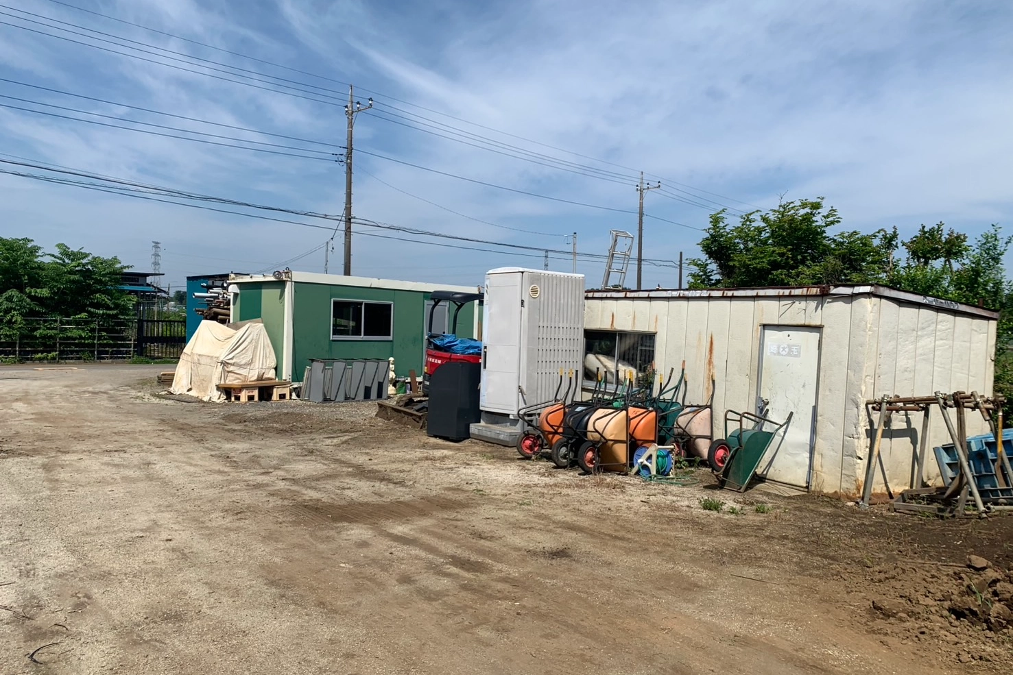 広大な土地に資材置き場とスーパーハウスが揃う造園会社の管理施設です。