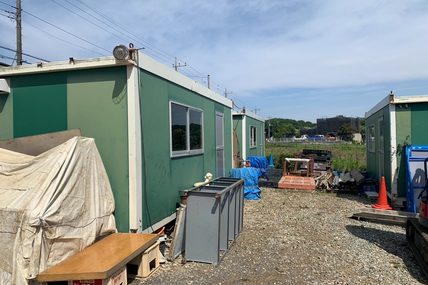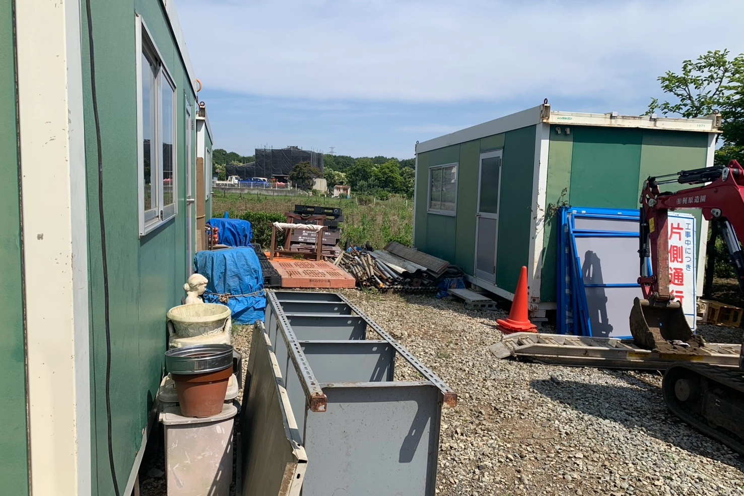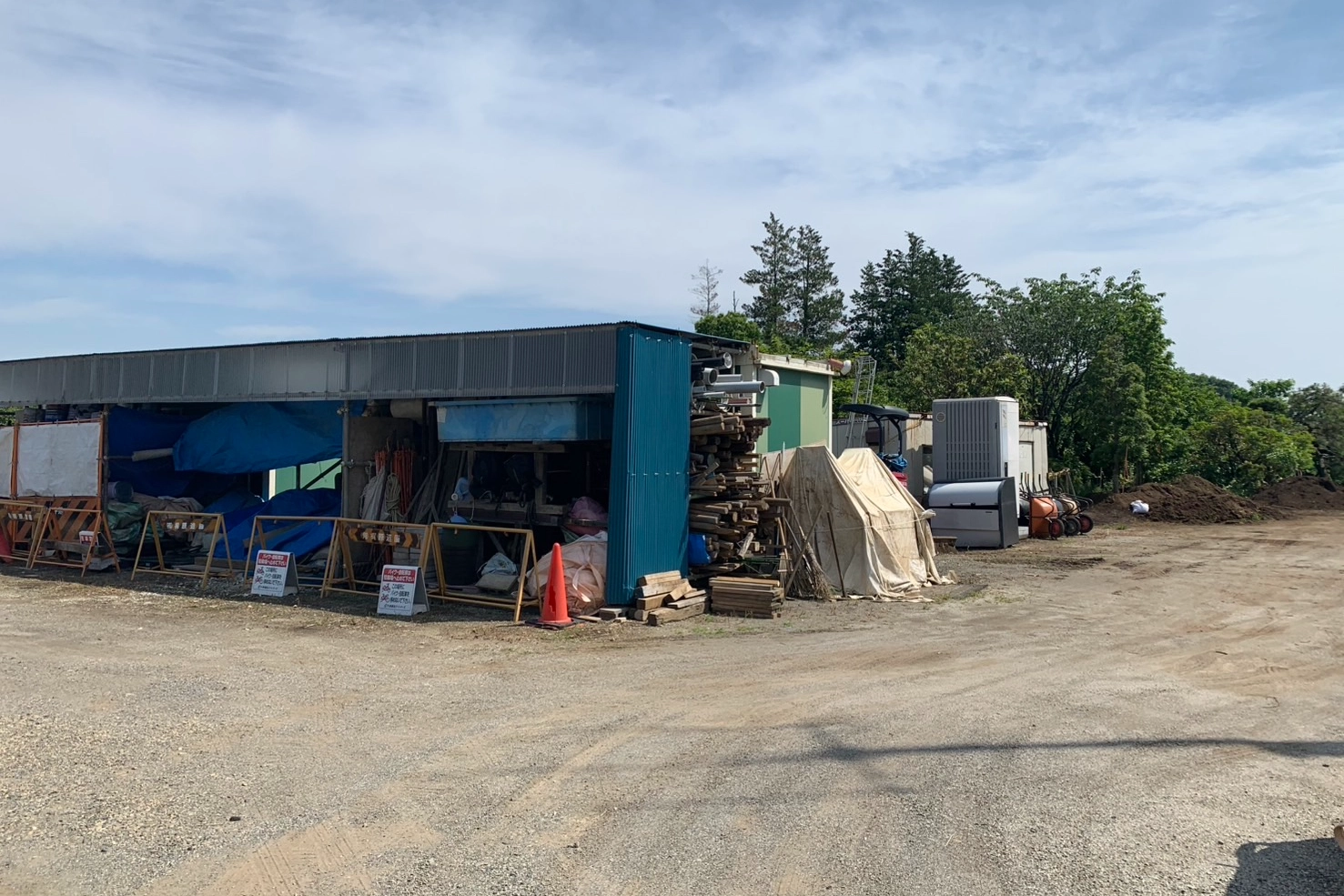 広大な土地に資材置き場とスーパーハウスが揃う造園会社の管理施設です。