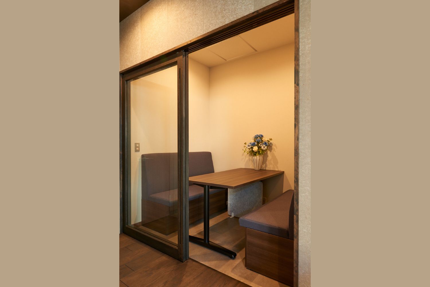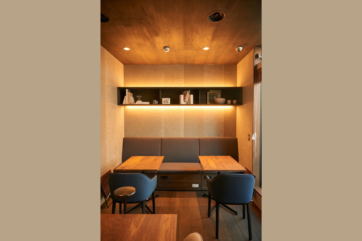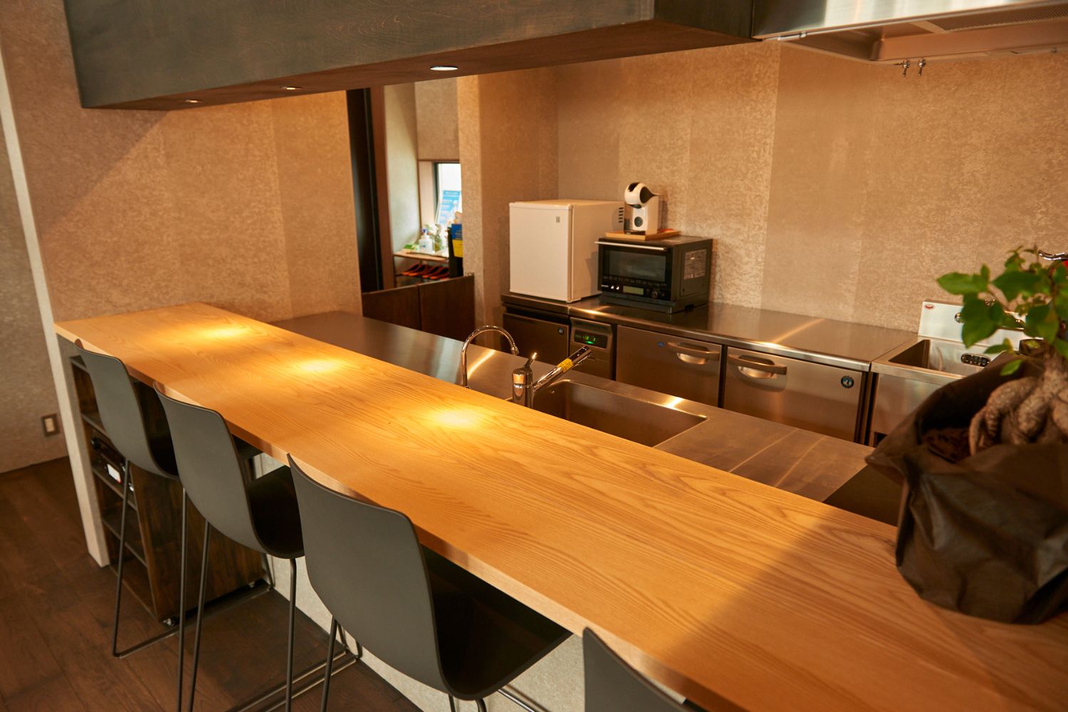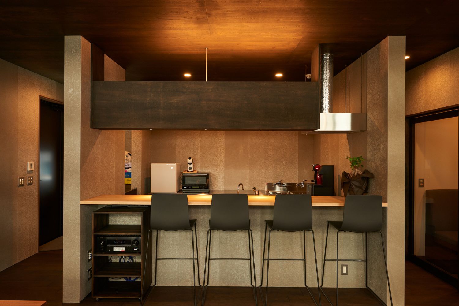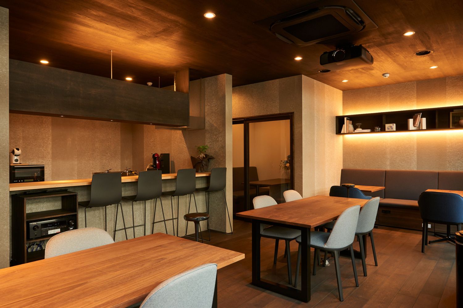 洗練された黒色と温かなイメージの木目を基調したカフェバースタイルのレンタルスペース