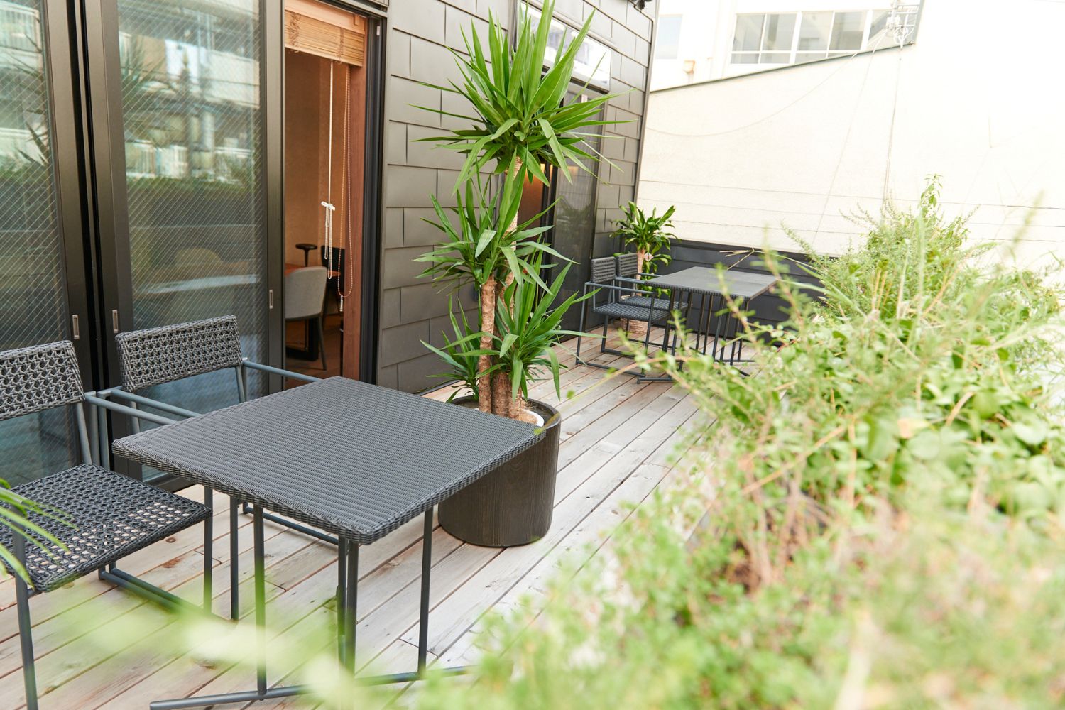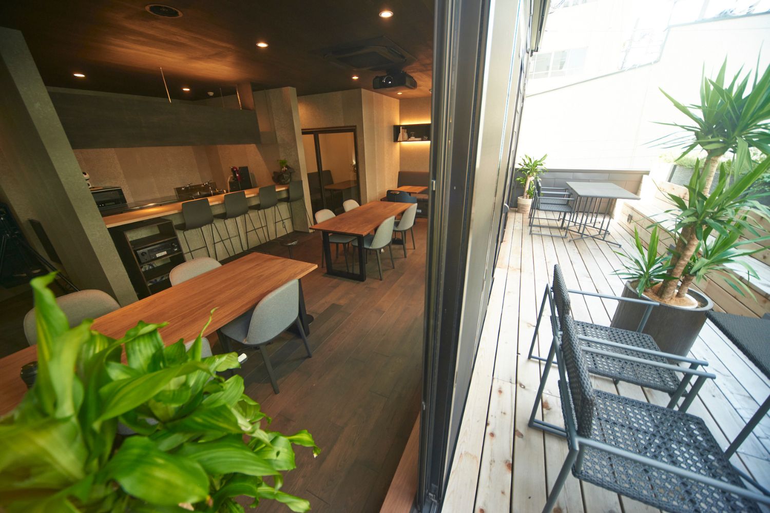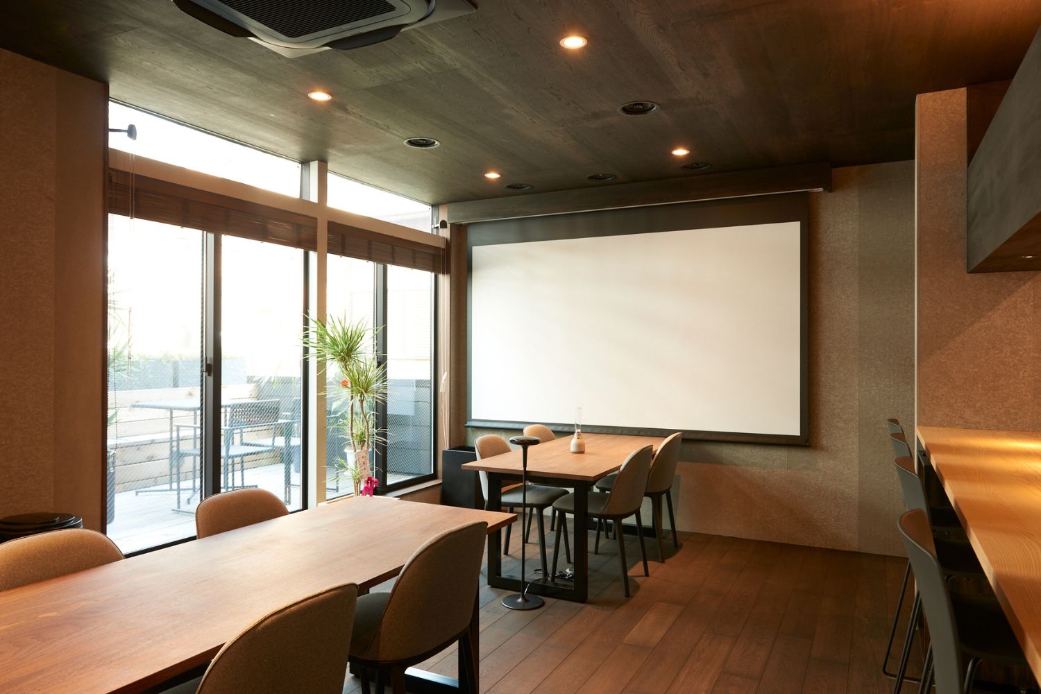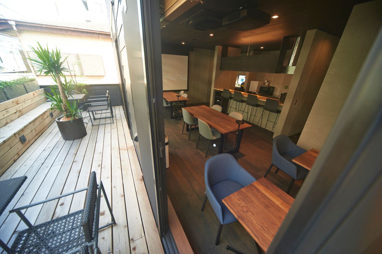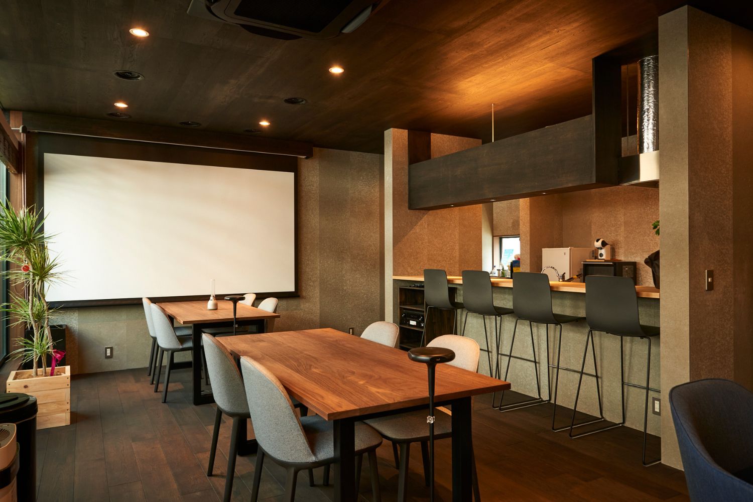 コワーキング&コミュニティラウンジとして運営するカフェバースタイルのレンタルスペースになります。高性能プロジェクター完備、テラス席もございます。