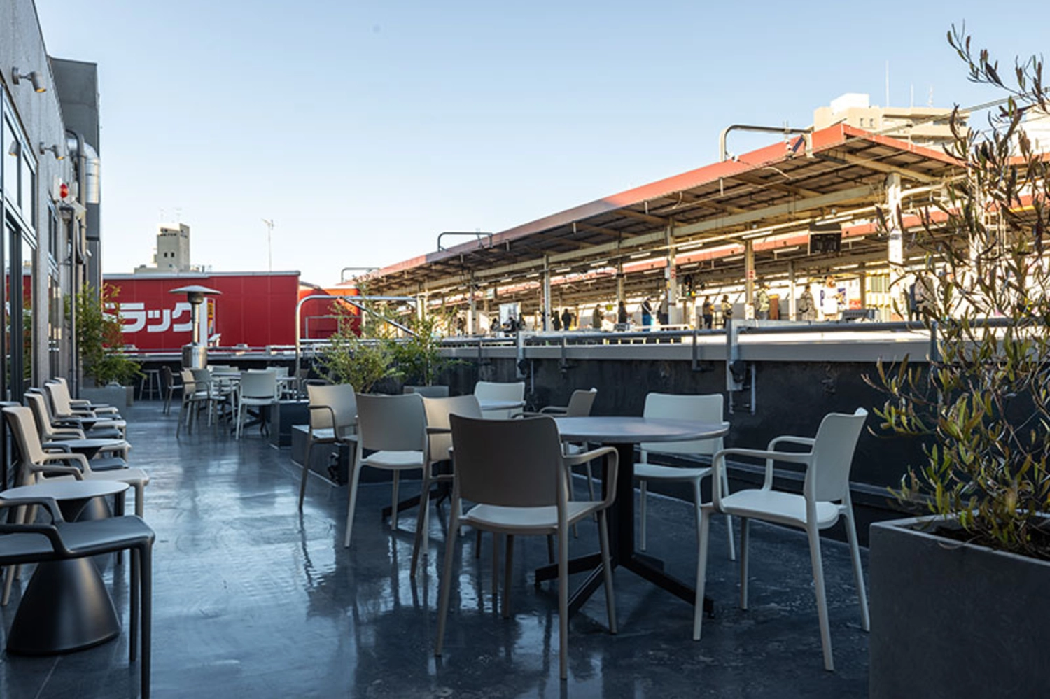 「ROOFTOP sauna」に併設するコワーキングカフェです。お客様や業務に影響がない範囲で、ドラマ、映画、CM、MVなどのシーン撮影に貸出しております。ヨギボーのスペース、ラウンジのソファやカフェチェア、駅ホームを同じ目線で眺められるテラス席など、豊富なフロアです。個室会議室も大小ご用意しています。貸切利用の場合、サウナエリアも同時に借りていただかなければなりません。撮影希望の場合、まずはお気軽にご相談くださいませ。