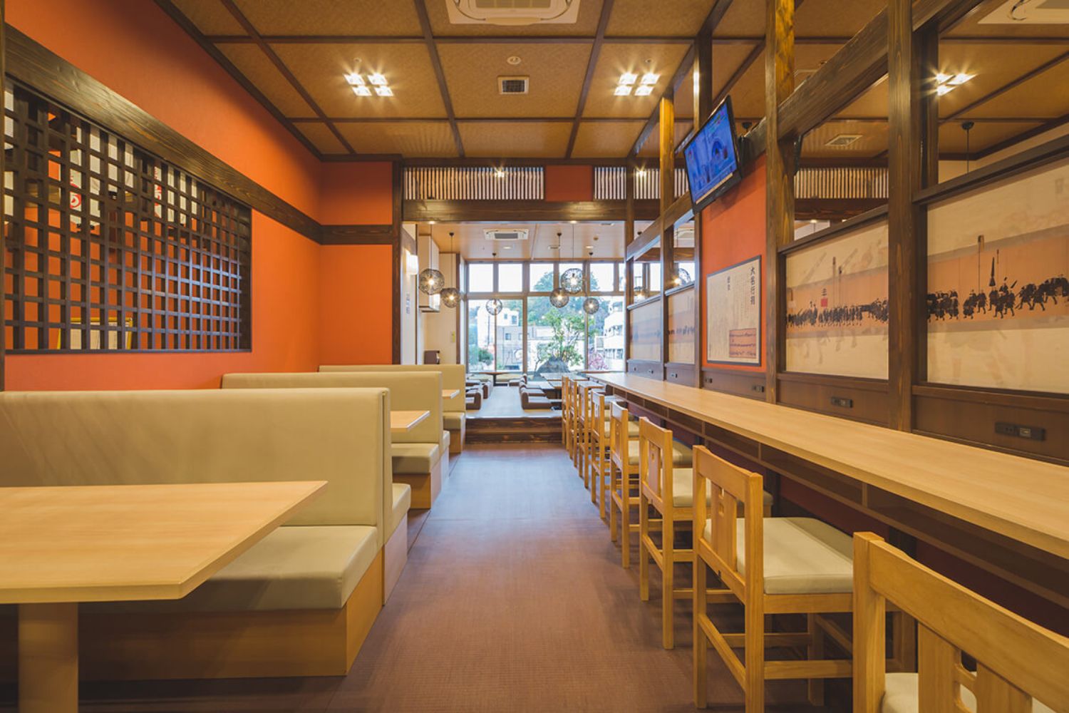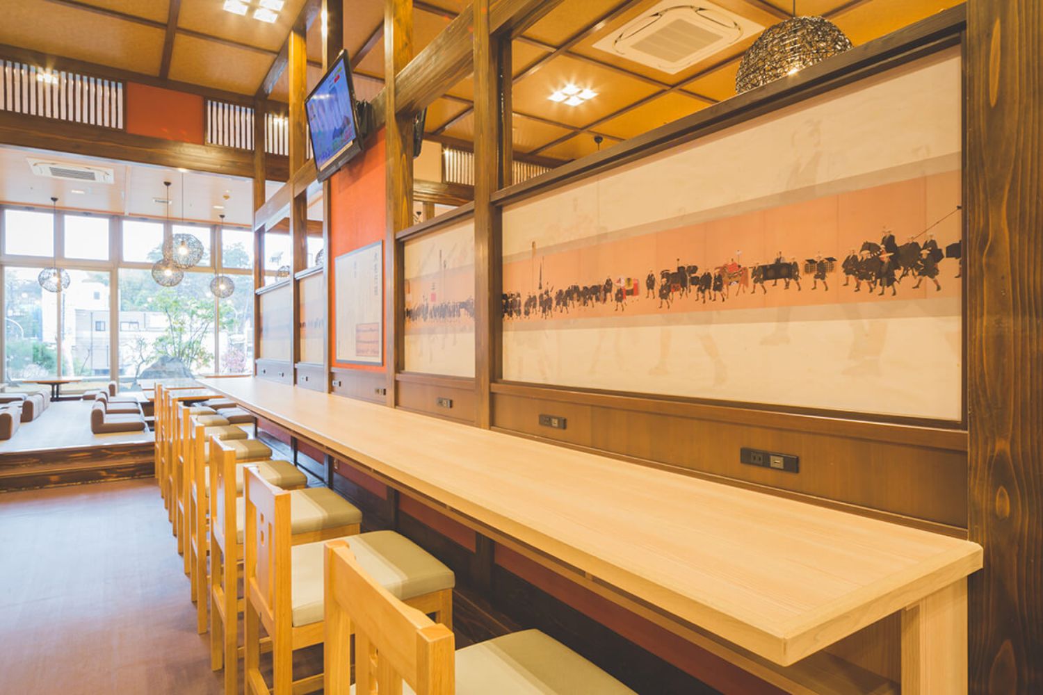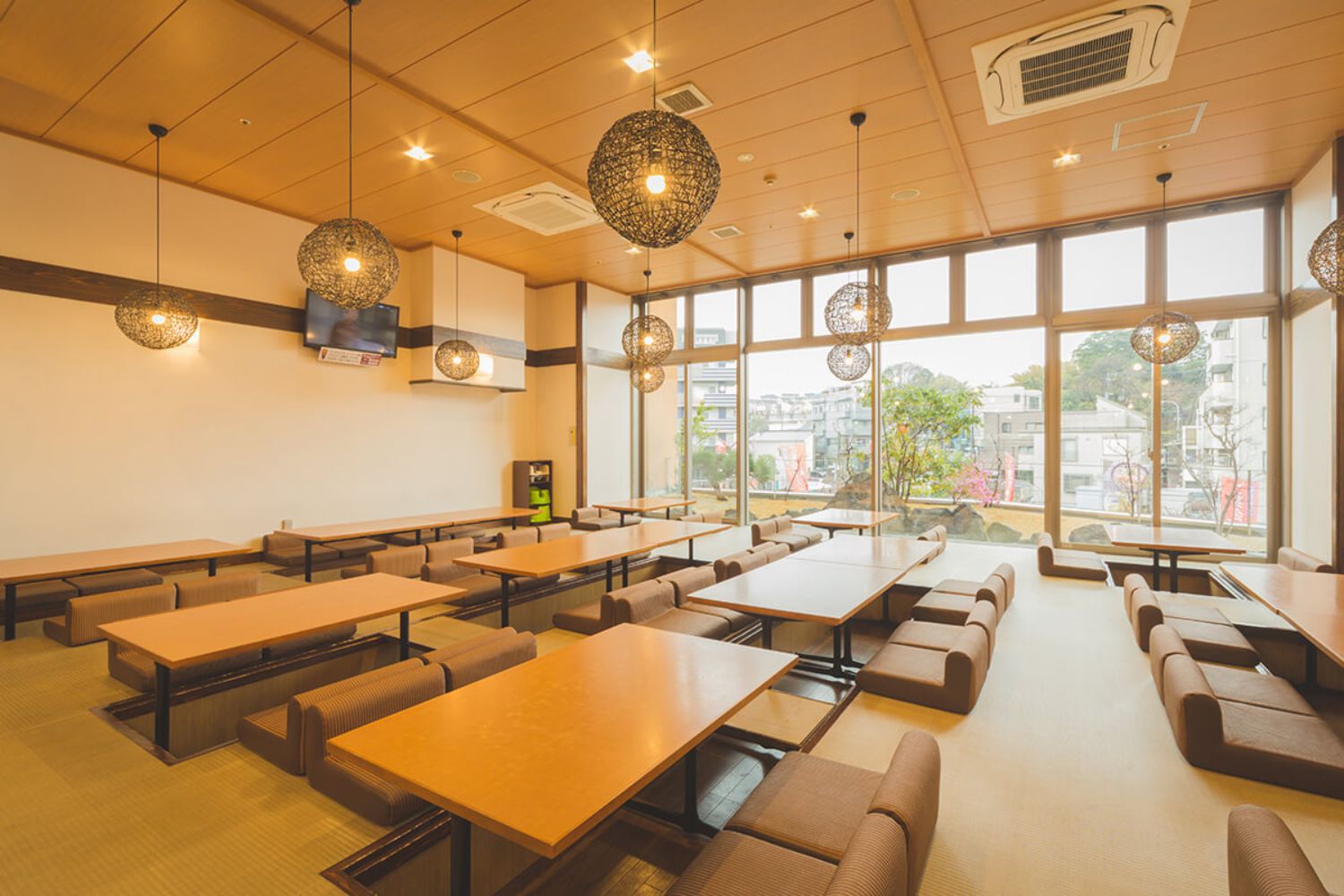 気分は東海道宿場町。明るく元気なスタッフがお出迎えします。おひとり様でも、ご家族連れでも。満天の湯はお客様の第二の我が家としてくつろげる空間です。