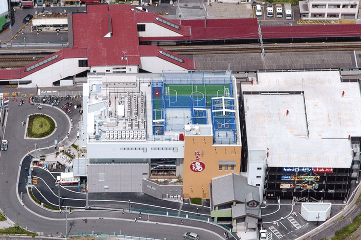 複数のテナントが入る駅前の大型自社ビルになります。他店舗や営業に支障がない範囲で、自社ビルの共用部や屋上の活用もご相談可能であります。屋上には、閉園したフットサル場があり、現在使われていないので、比較的に自由に、営業中でも利用することができます。撮影規模や時間帯によって、対応可否が変わりますので、まずはご相談ください。