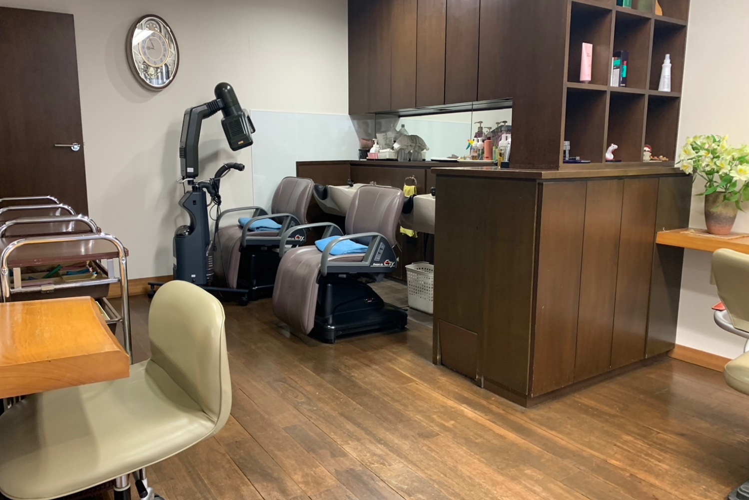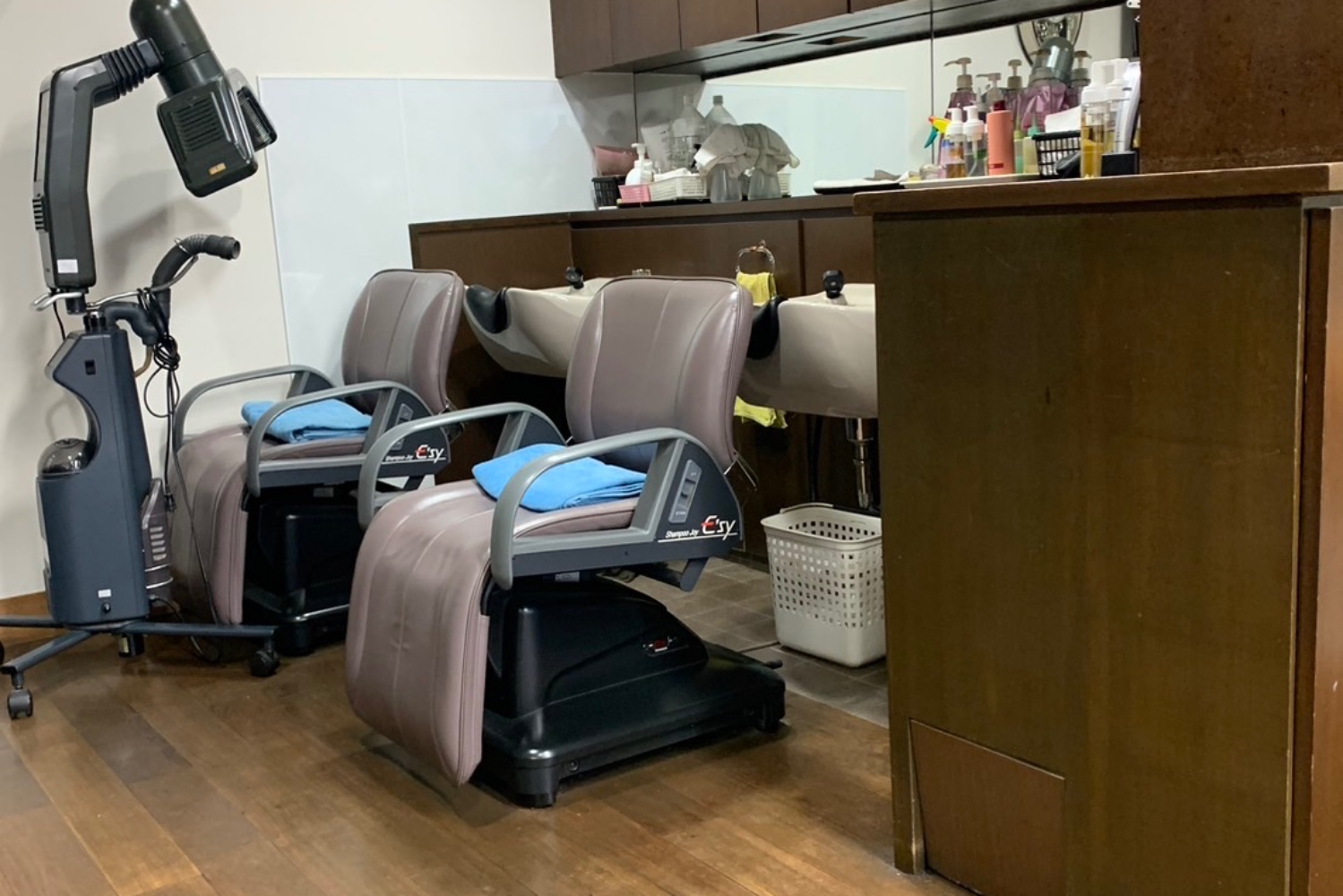 懐かしさを感じるシャンプー台や美容椅子が優しさ演出する美容サロン