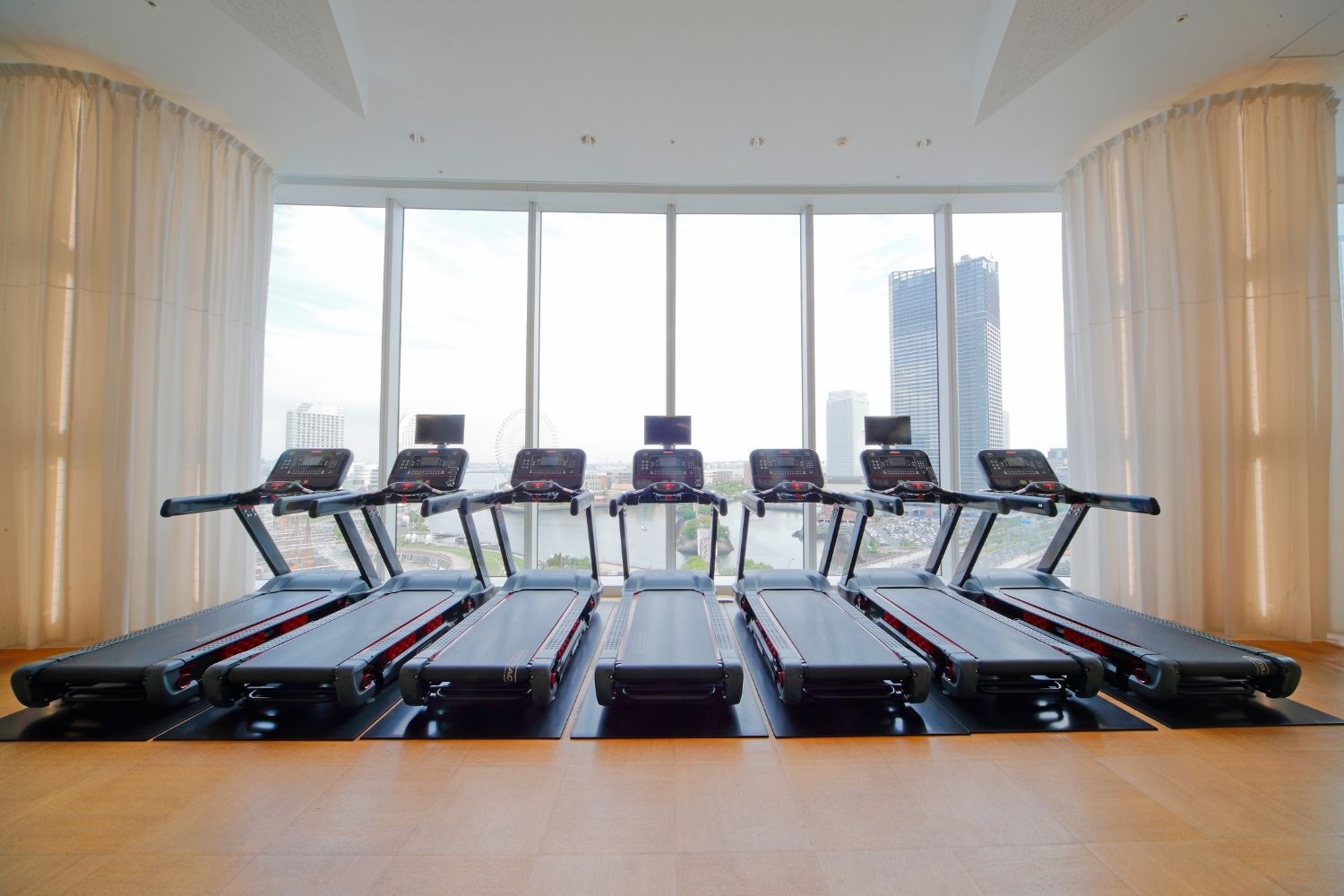 目の前に広がる幅40mのパノラマウインドウから、横浜・みなとみらいの絶景を眺めることができる延床面積3,735m²のエリア最大級のフィットネスクラブです。