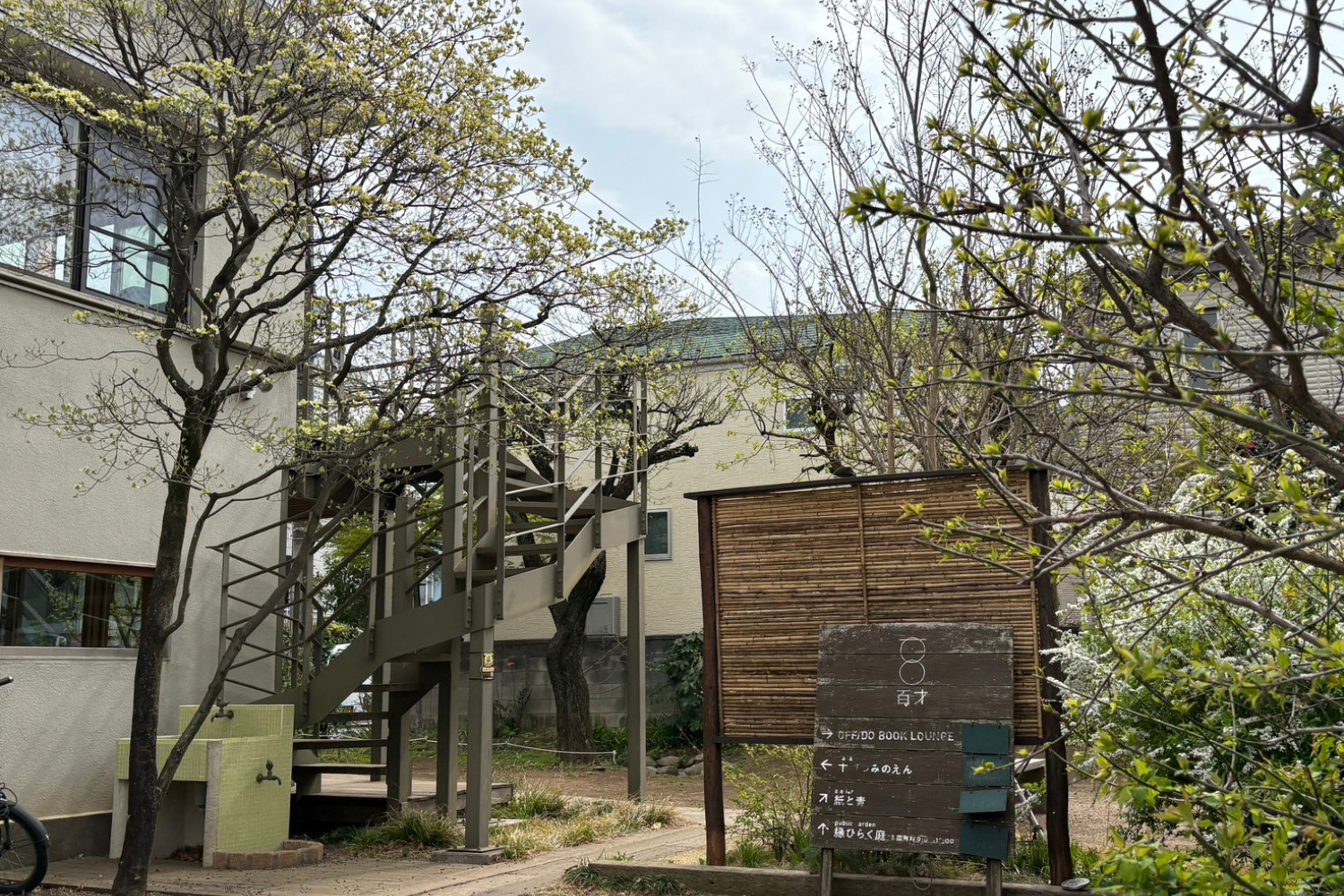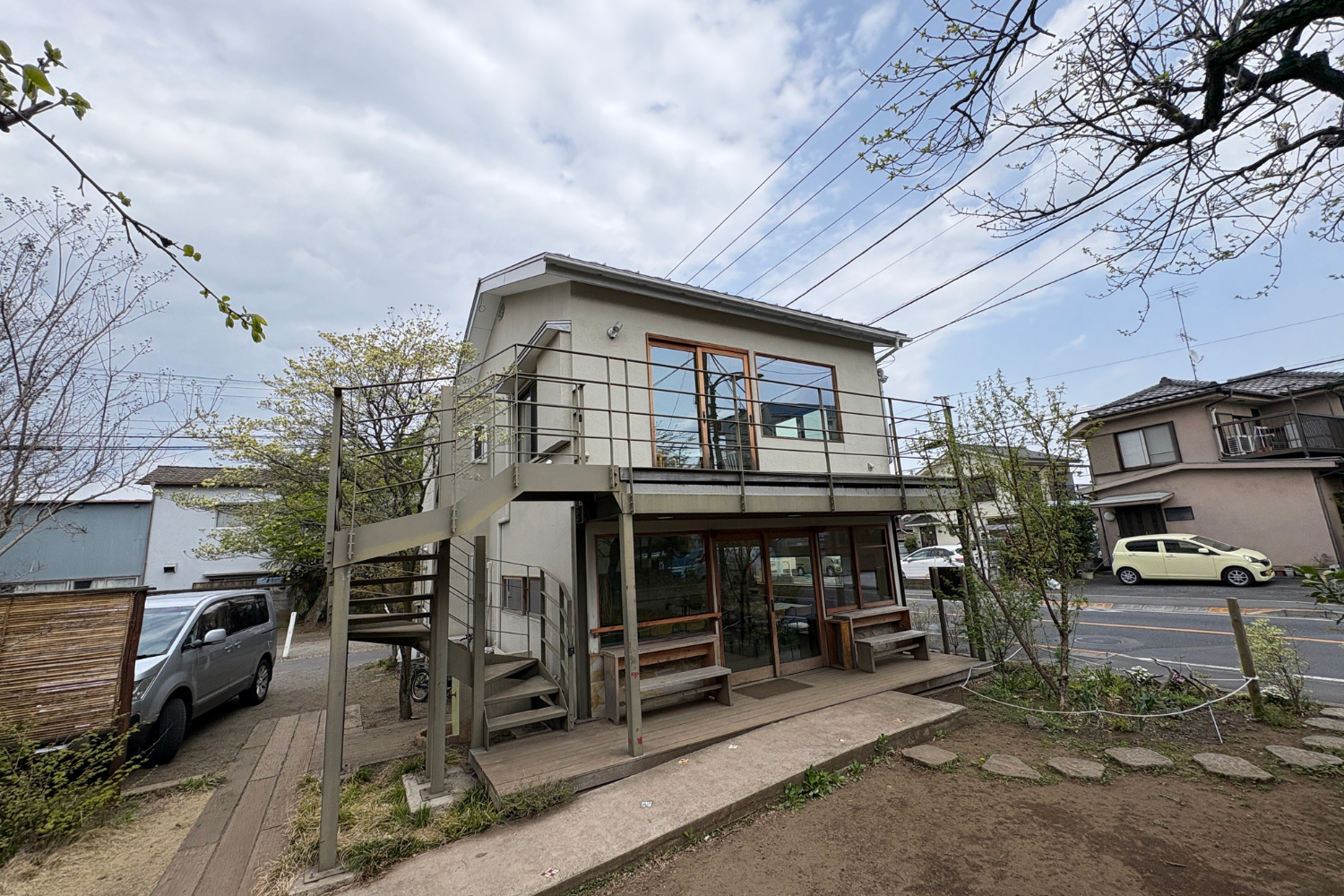 芝生のお庭をはさむように、母屋(OMOYA)と離れ(木づつみのえん)の2棟の建物で形成されています。「何かが生まれる」文化拠点のシェアスペースとして貸出しております。