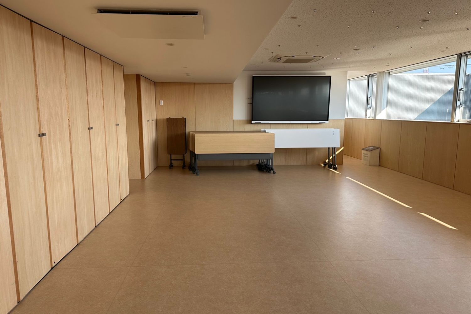 保育園等だけでなく、広めの炊事場を有するカフェスペースもあります。撮影スペースとしても利用できますし、楽屋・控室など自由な用途で使うことができます。また教材、文房具などを販売する売店も敷地内に併設しております。こちらの施設も、ぜひ撮影・ロケの参考にしてください。