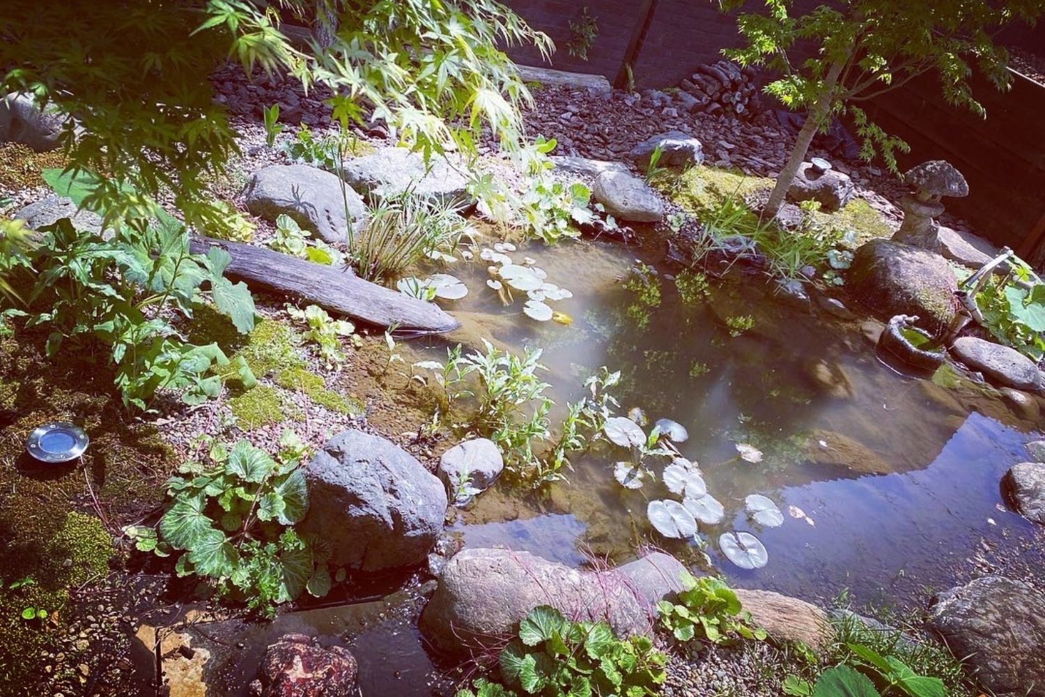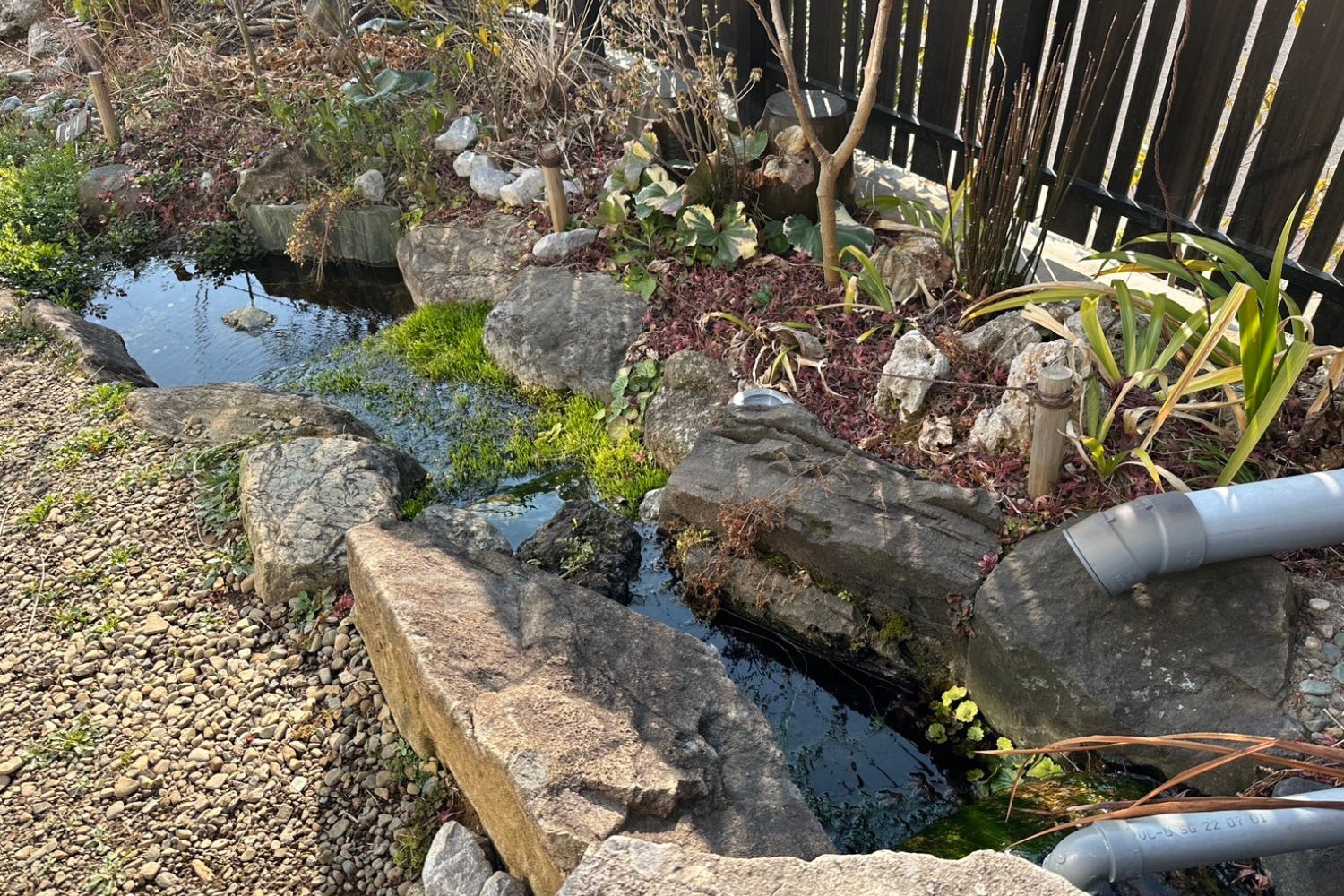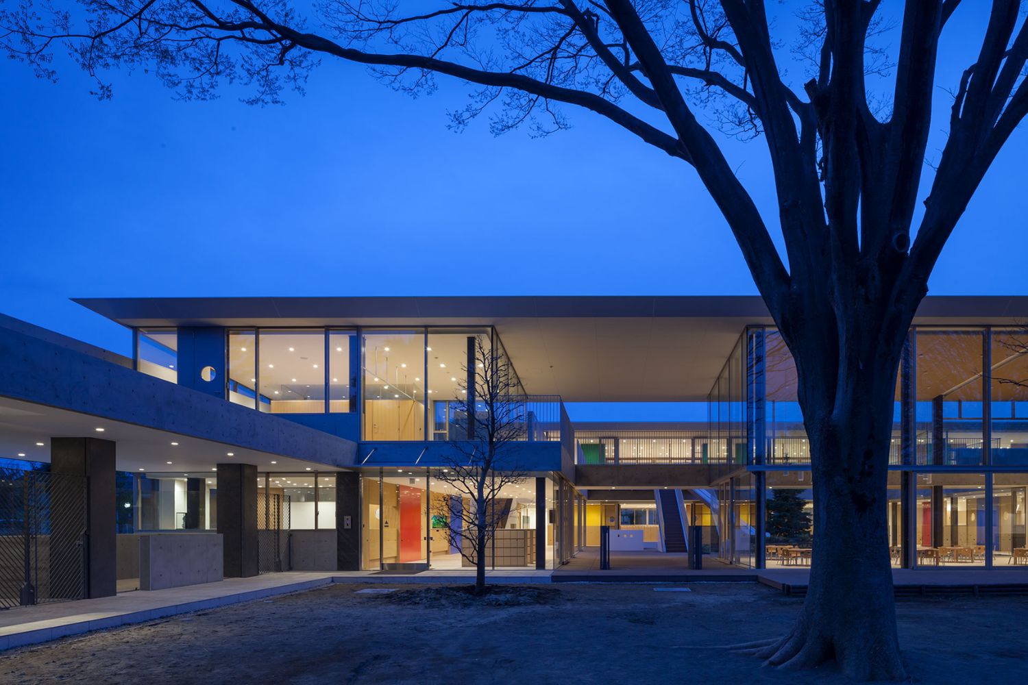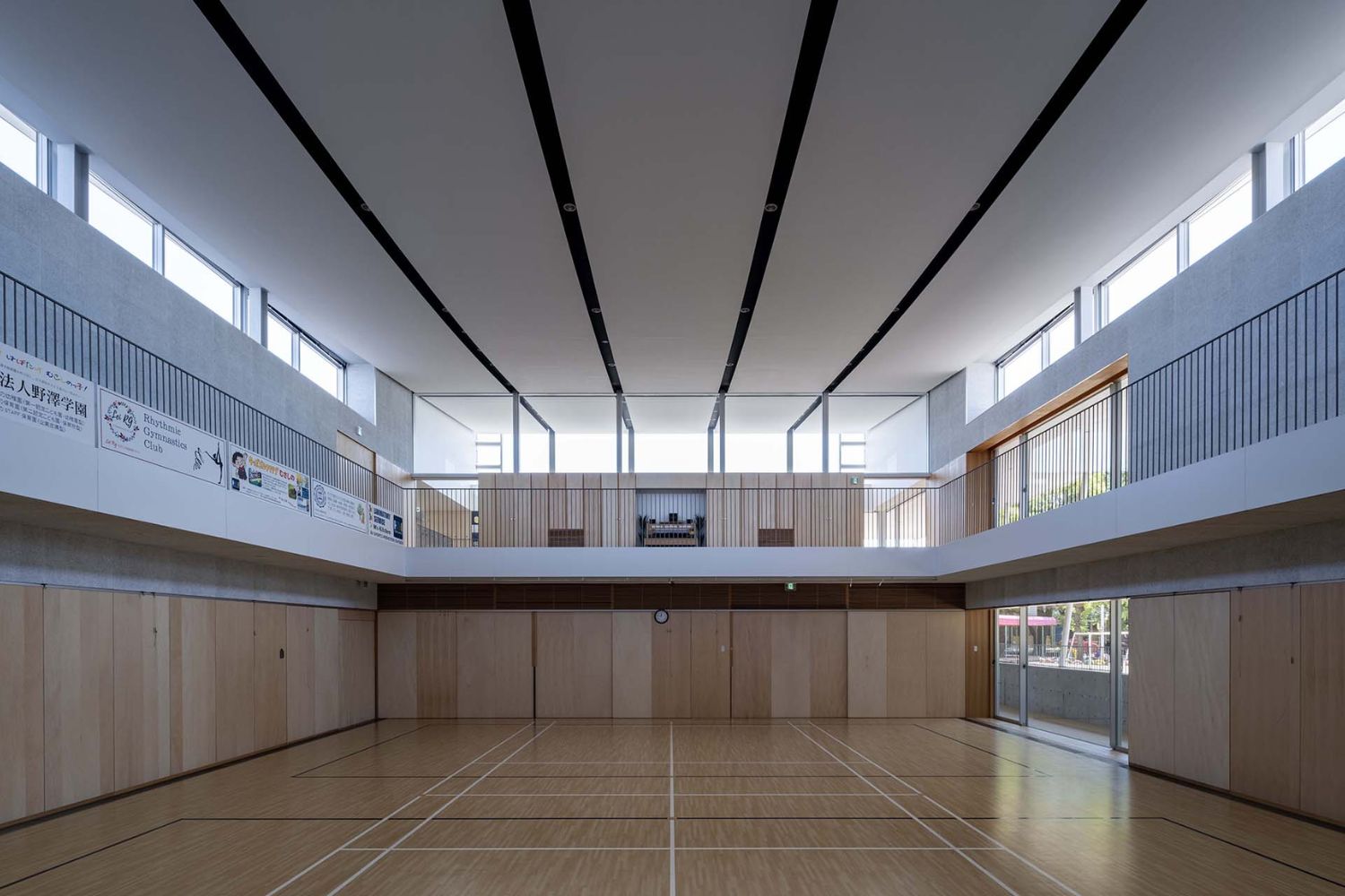緑溢れる校庭、雑木林、大ホールだけでなく、生き物が集う水辺も併設する約1万㎡の大型認定こども園