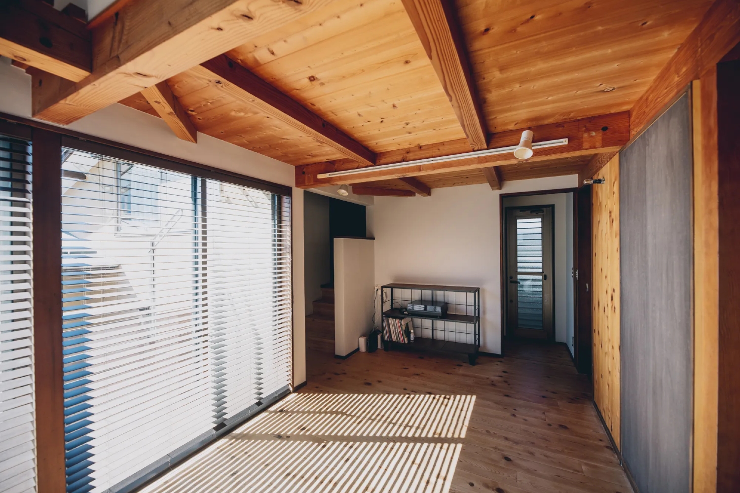 男の秘密基地のような無骨さも兼ね備える洗練された木とデザインが調和する一軒家