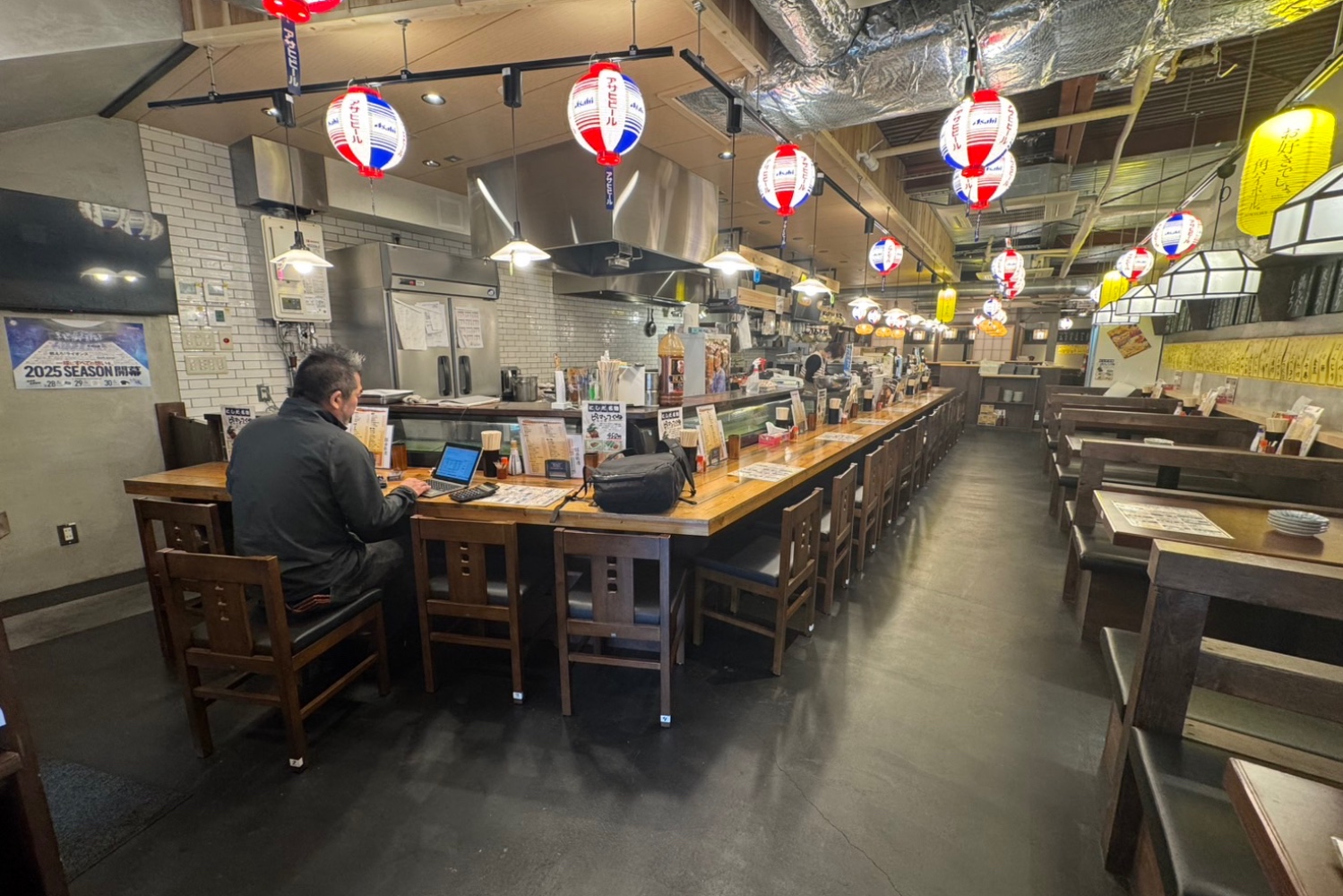 テイクアウトのショーケースも兼ね備える路面店の大衆やきとり居酒屋です。ドラマ、映画、CM、MV、再現ドラマなどのシーン撮影のロケ地として貸出しております。大きな提灯の横のショーケースには、焼き鳥がズラリと並びます。店内だけでなく、テイクアウトシーンの撮影も撮れるのがおすすめです。90席以上と広く、大規模な撮影でもストレスなく、多彩なアングルを狙えます。やきとり居酒屋の撮影に困ったら、ぜひご利用ください。