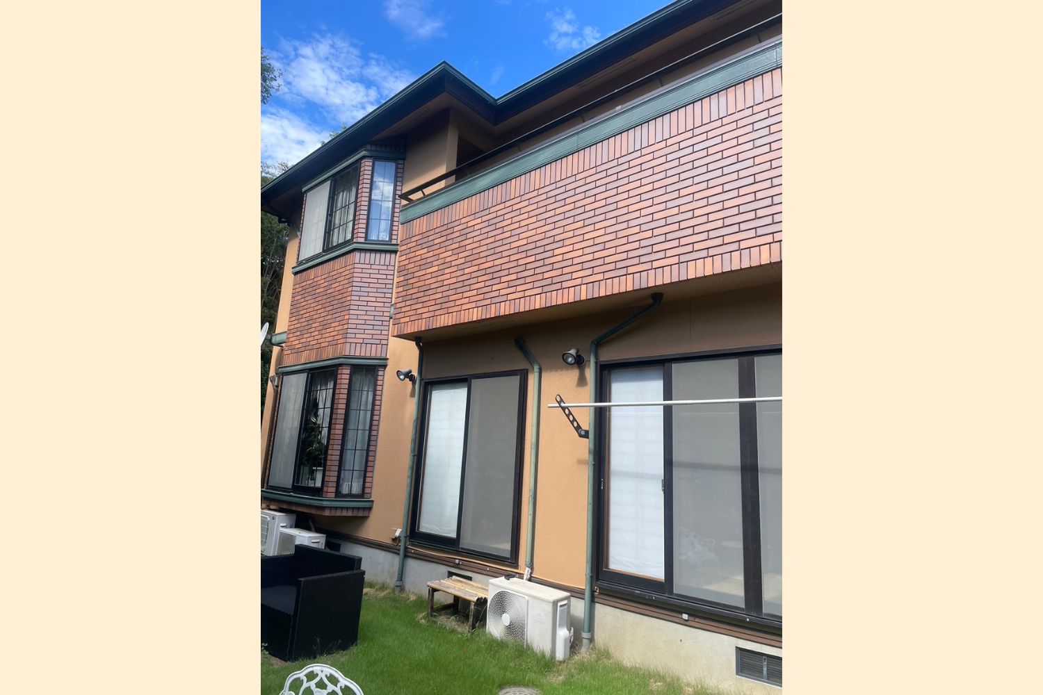 レンガ調のオレンジ色の外観が特徴的な6LDK庭付きの大きめ一軒家