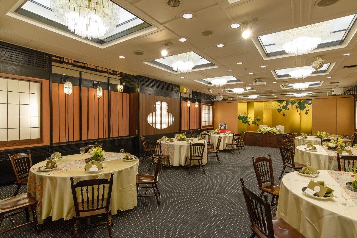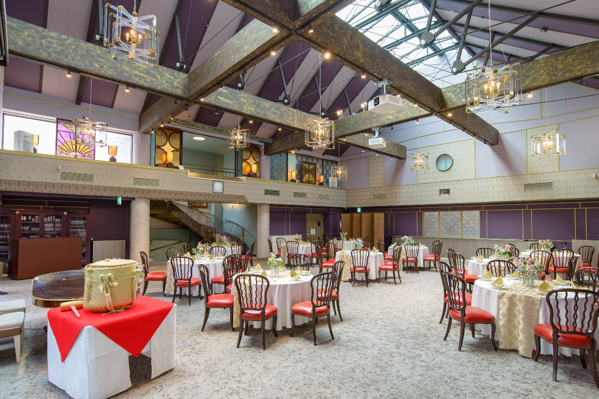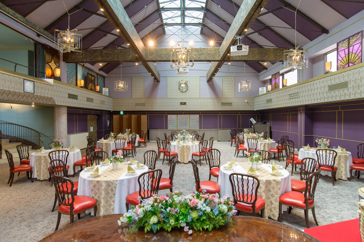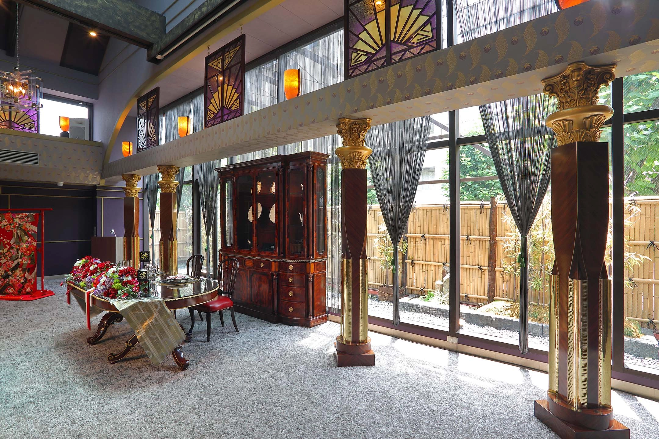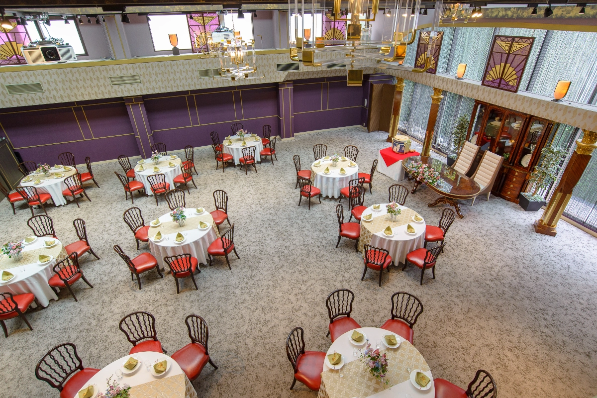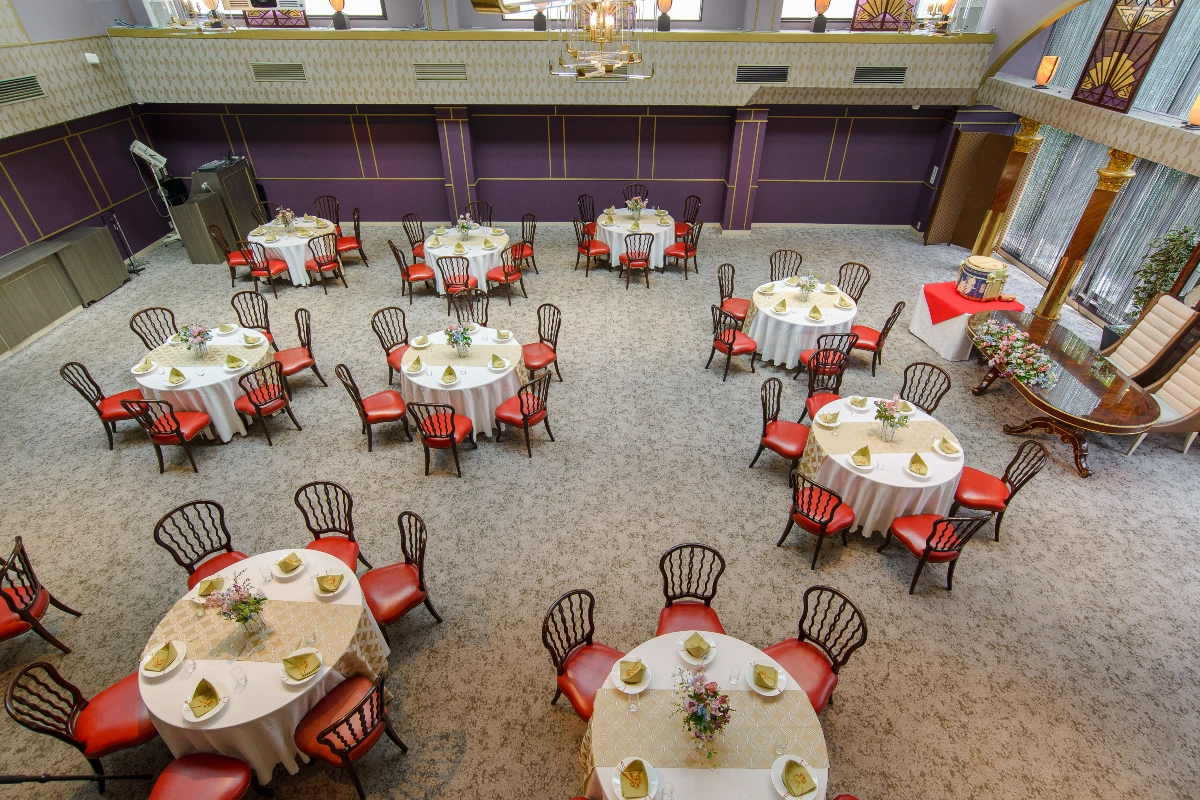 乃木會館に隣接する天井高最大9mの吹き抜けが自慢の最大収容人数100名を誇る披露宴会場です。ドラマ、映画、CM、MVなどのシーン撮影から、バラエティ番組の収録スタジオ、対談場所としてご利用くださいませ。天井高でクレーンや美術セットも組みやすく、大規模な撮影におすすめです。また一階のロビーやエントランス、3Fの貴賓室と合わせ一棟貸切も可能でございます。他の式場やレストランなどで断れる撮影でも、まずはお気軽にお問い合わせくださいませ。