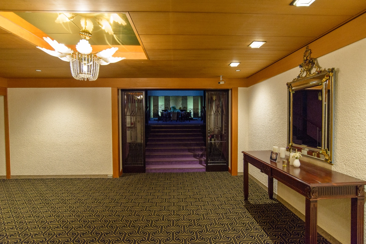 披露宴会場だけでなく、外観、エントランス、一階ロビー、エレベーター、階段などの共用部での撮影も貸出しております。石畳の重厚感あるエントランス、そして高級感漂うロビーは、高級ホテルやレストランのようなシーンにおすすめです。また一般のお客様を気にせずに撮影できますので、階段やエレベーターでの撮影も気兼ねなく行えます。ドラマ、映画、CM、MVなどのシーン撮影で、ぜひご利用ください。美術を入れ込むことで、多彩なシチュエーションを演出できます!