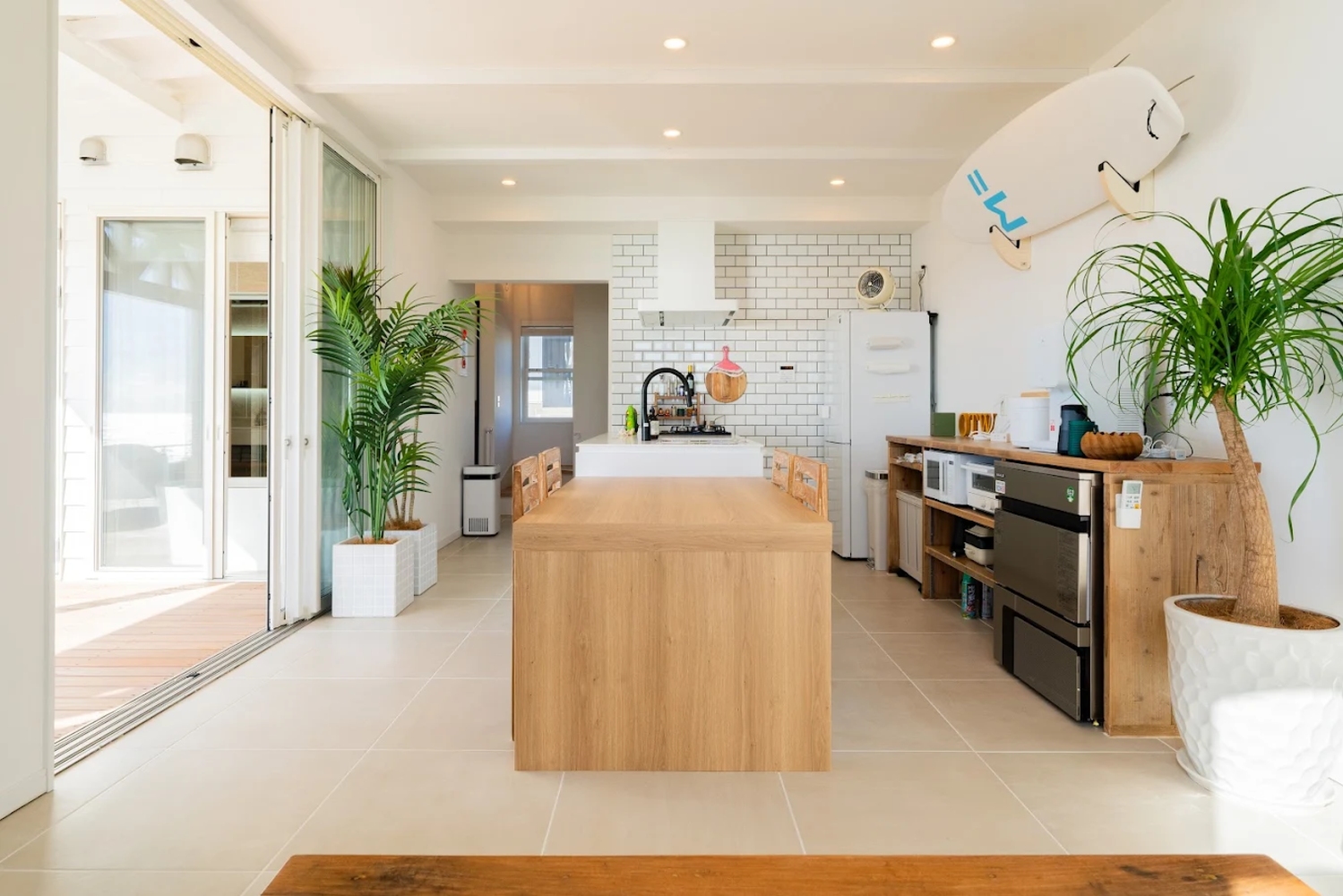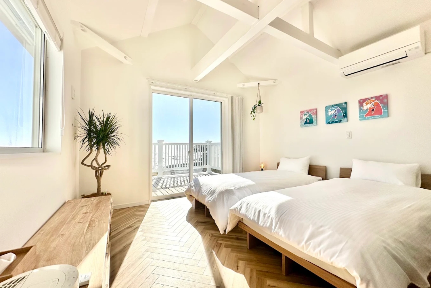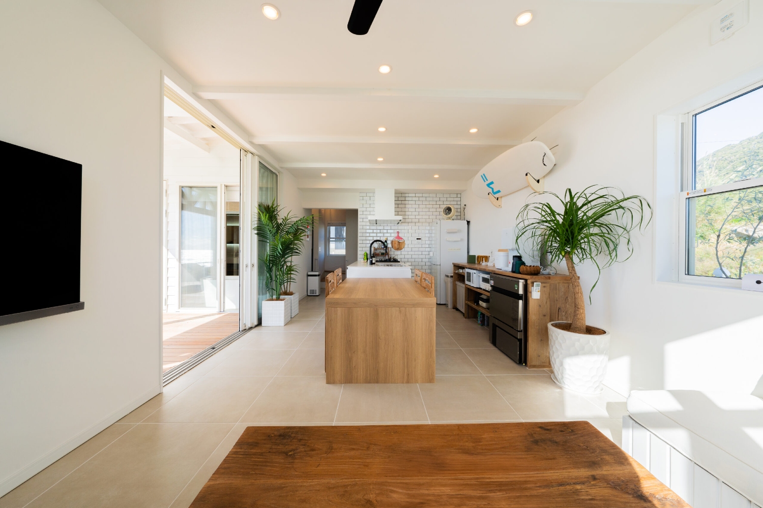 カリフォルニアテイストの内外装が特徴の貸別荘です。白を貴重とした南国雰囲気の室内は、リビングはタイルで寝室は木目調の床、観葉植物やサーフボード、バスルームも可愛く、どこを切り取っても画になります。海外設定のシーン撮影や、CM、広告、商品物撮り、アパレルなどにピカイチでおすすめ!外観やエントランスも海沿いの一軒家らしく、椰子の木や柵を背景にしたカットも狙えます。ドラマ、映画、CM、再現ドラマ、MVなどあらゆるシーン撮影で、ご利用ください。