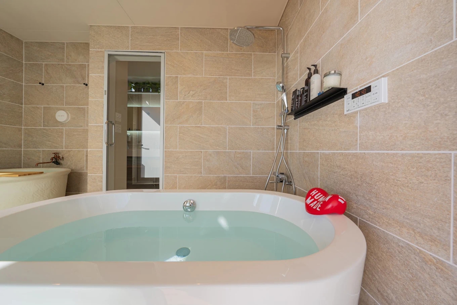 恋人・気の知れた友人同士でリラックスしてサウナもお楽しみ頂けます。HARVIAの大型サウナ、アイスバスを完備し、オーシャンビューのテラスで最高の”ととのい”を味わえます。ドックランやサウナ、貸別荘を活用したバラエティ企画や恋リアなどもご相談させていただきます。隣には、プールに、サウナ!ジムに、ゴルフ!多彩な設備を兼ね備え、あらゆる撮影対応できるラグジュアリー別荘”GIFT HOUSE 館山 伊戸”もございますので、ぜひチェックください。