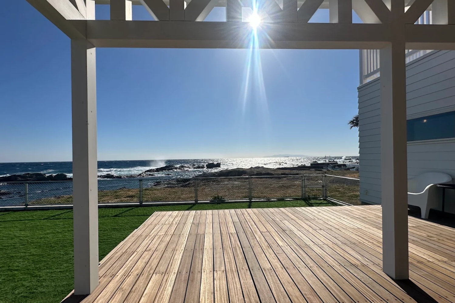 千葉県館山市に位置し、絶景のオーシャンフロントを望める壮大な海の極上のロケーションの貸別荘です。ご家族やご友人、そして愛犬と共に贅沢な時間をお楽しみ頂ける空間として、HARVIAの大型サウナとカリフォルニアテイストの内外装が作り出すリラックスした雰囲気の中で、海を目の前に大自然と一体感を感じながら、心身共にリフレッシュできます。愛犬と一緒にのんびり過ごす間、サウナやジャグジーでリフレッシュしたり、宿泊するすべての方がさまざまな形でゆっくりとしたひとときをお過ごしいただけます。