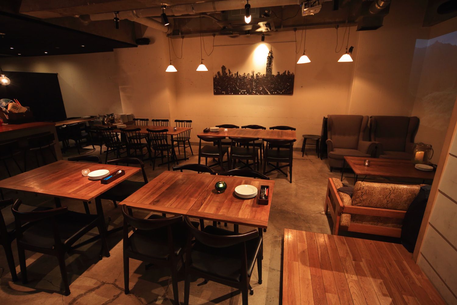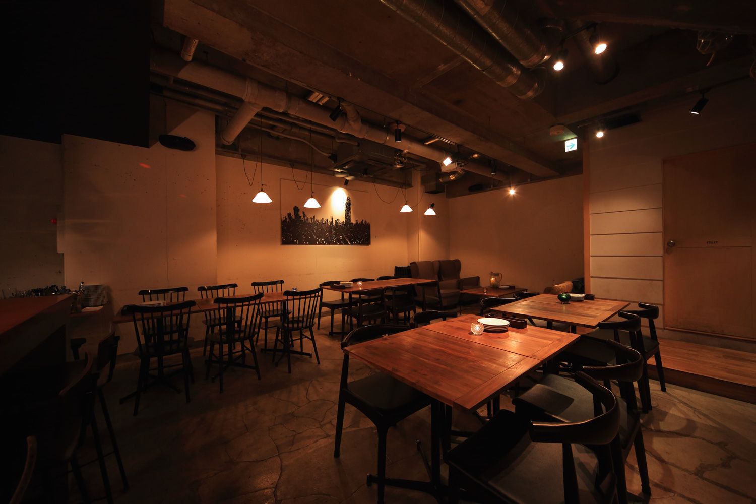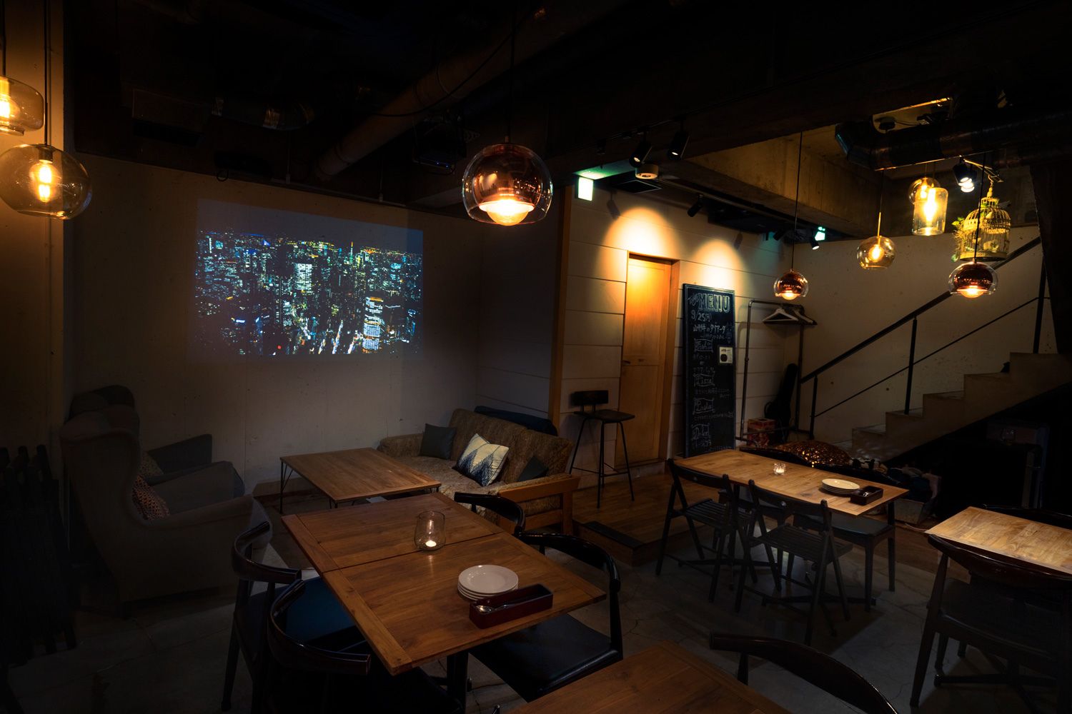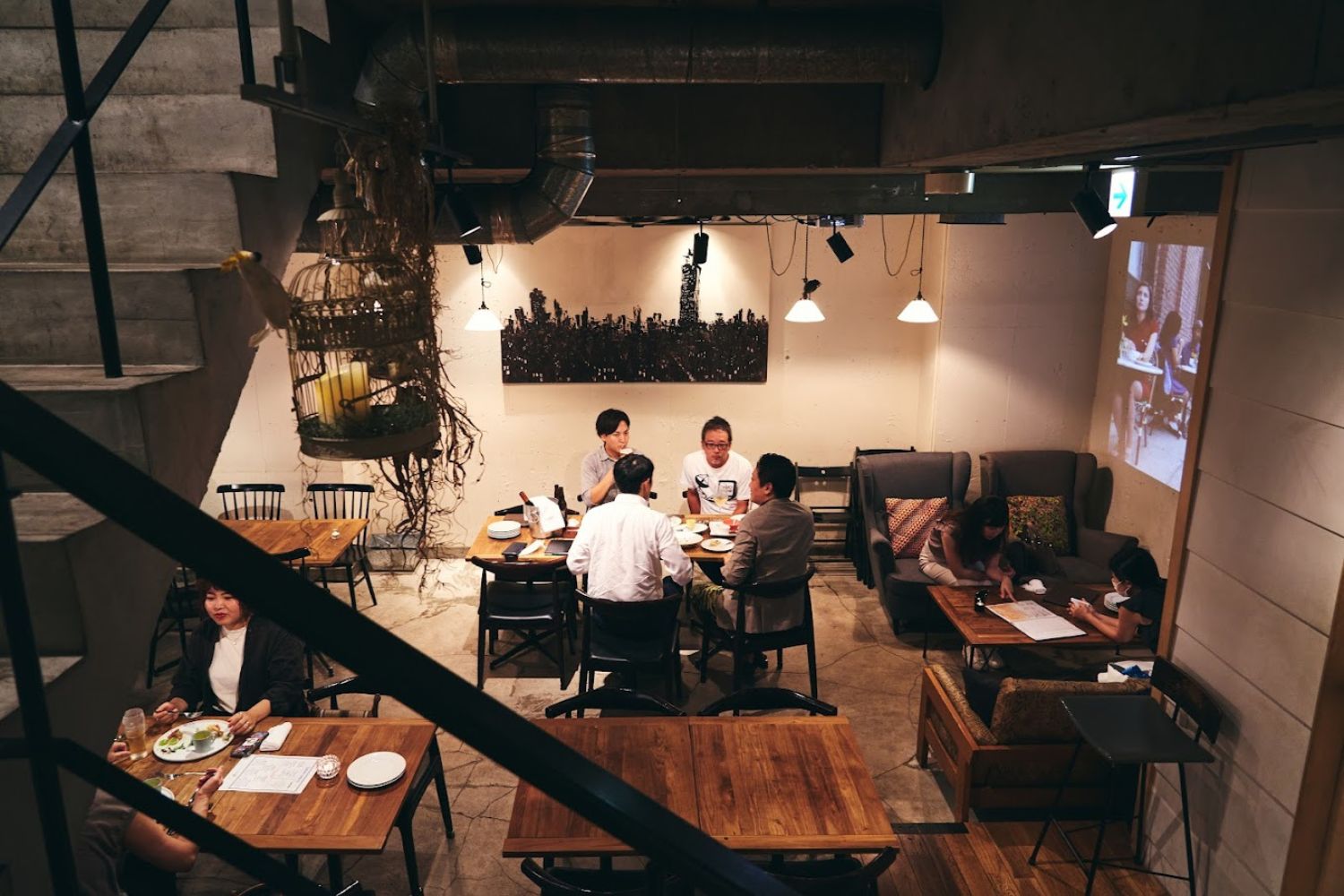 コンクリートの吹抜で、開放感ある空間が特徴的な大人隠れ家的なイタリアンダニイングです。基本営業時間外で、積極的にドラマ、映画、CM、再現ドラマ、縦型ドラマなどのシーン撮影に貸出しております。カウンターやソファ席もあり、多彩なカット撮ることができると大変人気のロケ地になっています。またフロアに降りる階段を活用した、美男美女や出会いの登場シーンを簡単に演出することができます。大人デートや合コン、飲み会、2次会などシーン撮影で幅広くご利用くさだい。
