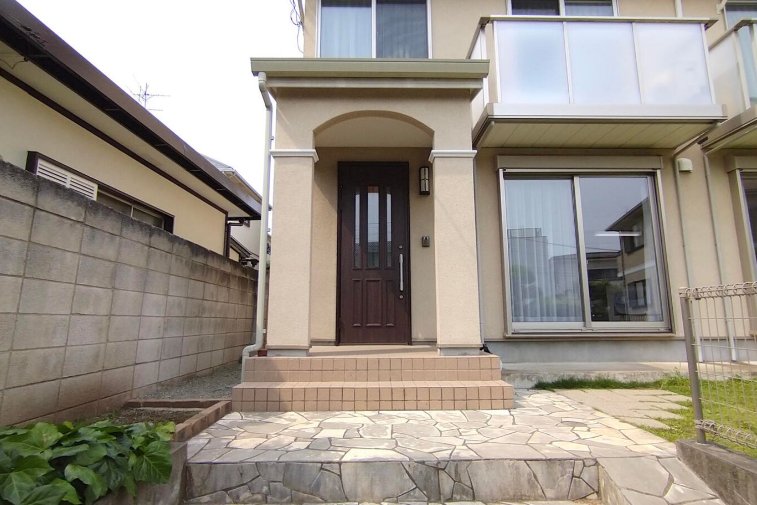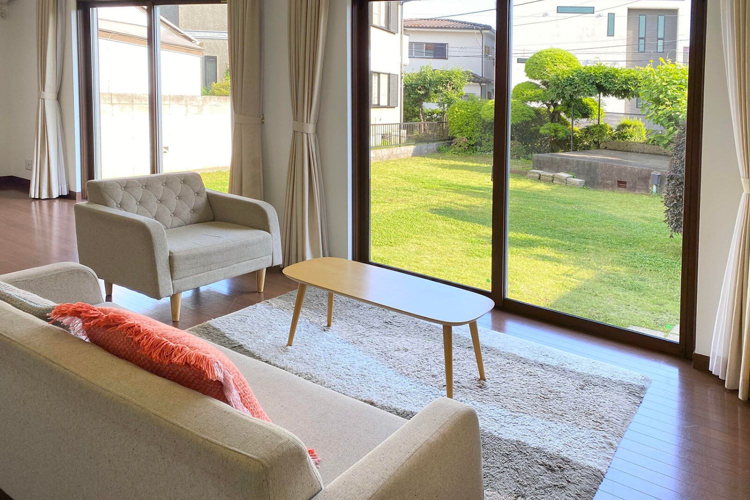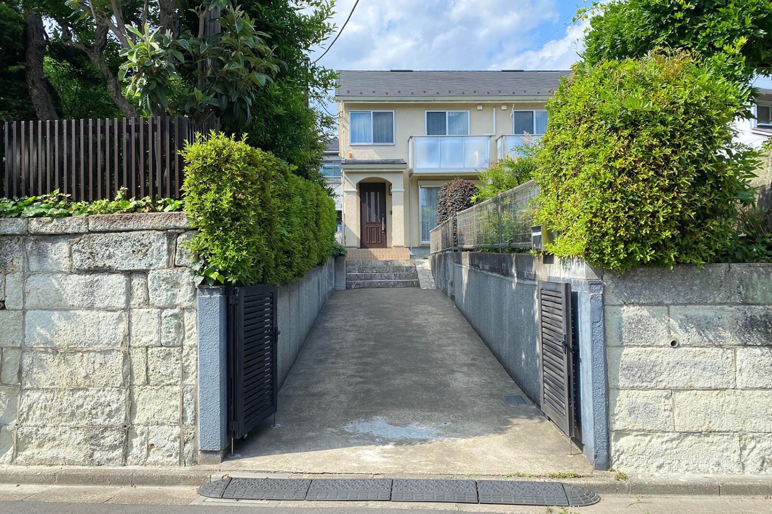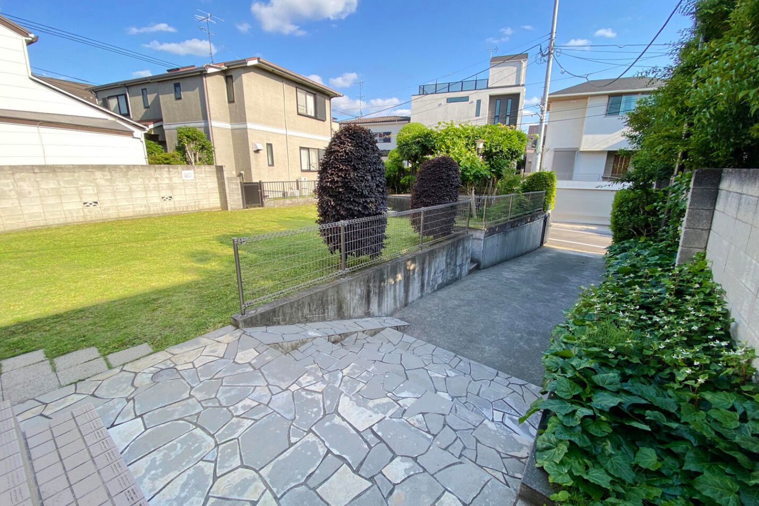 広い芝生と玄関までの長いストロークが特徴的な一戸建てハウススタジオ